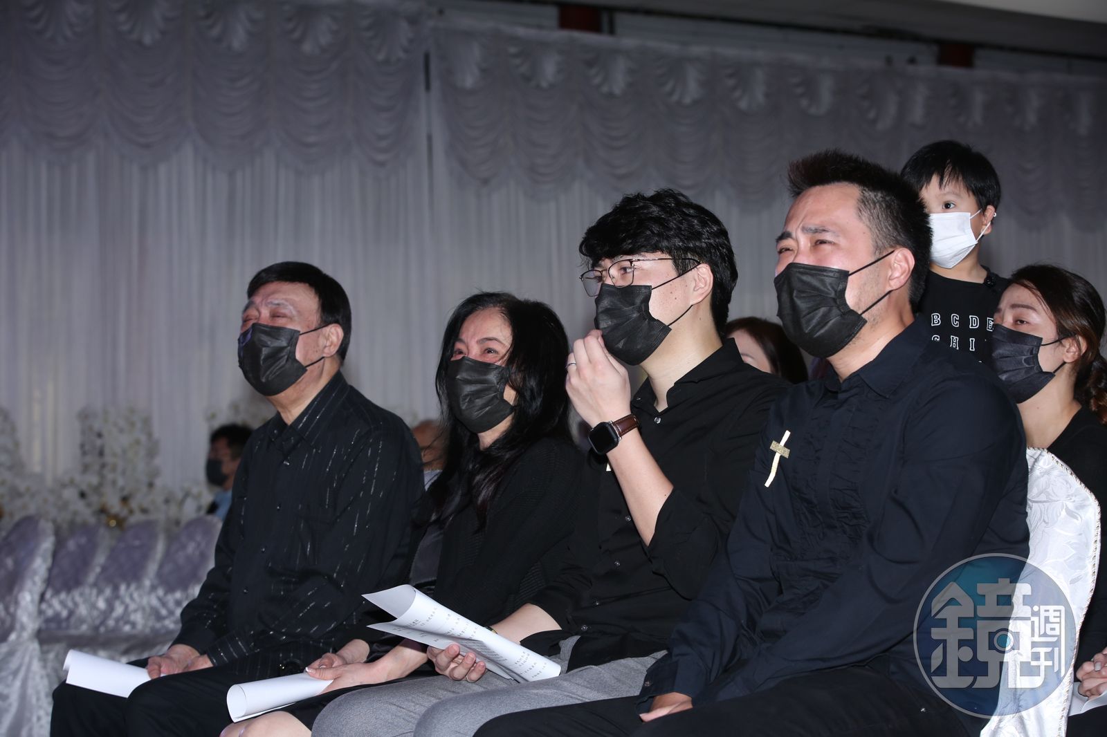 今追思會上播放余苑綺的回憶影片,她在照片中一如過往的笑顏,播放著余苑綺和余祥銓過去參加綜藝節目的片段,兩人合唱《製造浪漫》展現歌喉,余天全程注視影片,數度摘下口罩拭淚。