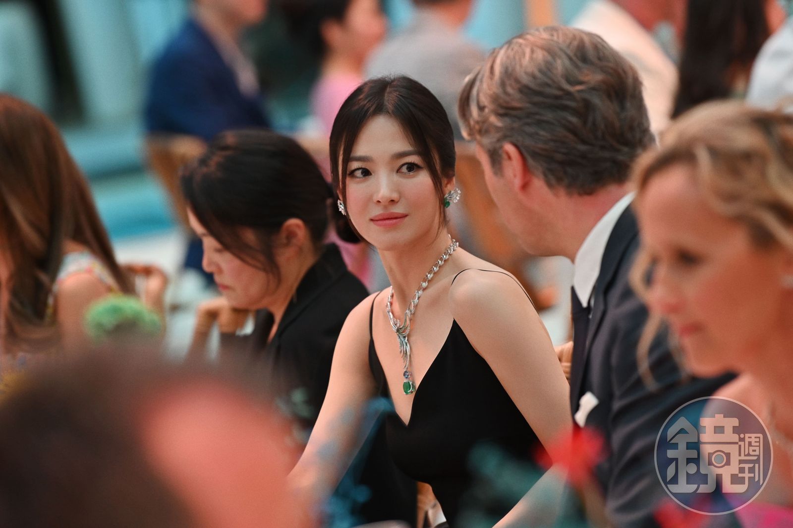 林心如所配戴的人魚之歌(Chant de Sirènes)系列,以水手們所流傳的人魚神話為創作題材,多樣寶石釋放璀璨光輝,由綠色大溪地珍珠、切割鑽石與鑲嵌碧璽相互交織。(Chaumet提供)