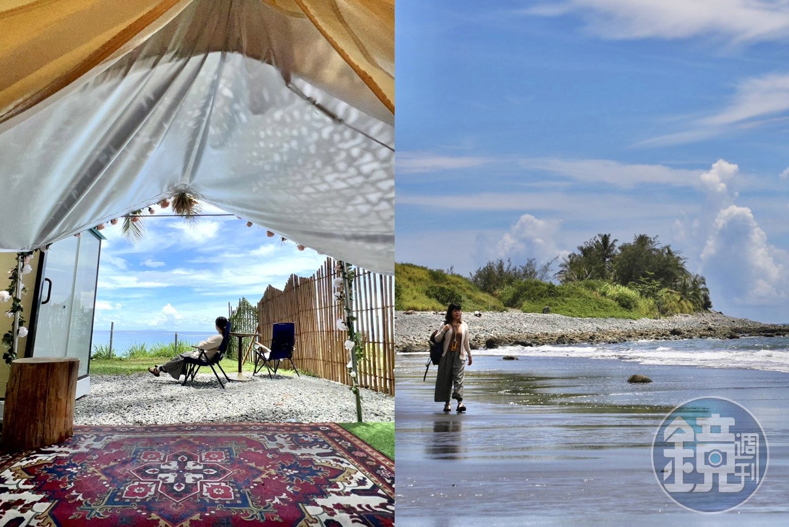 比起戶外露營帳篷,「拉法鋼琴咖啡屋」倒有點像是附有日光浴區的蒙古包。從咖啡廳或帳篷走到沙灘不用3分鐘,輕鬆就能包攬海岸白天和夜晚的景色。拉法鋼琴咖啡屋