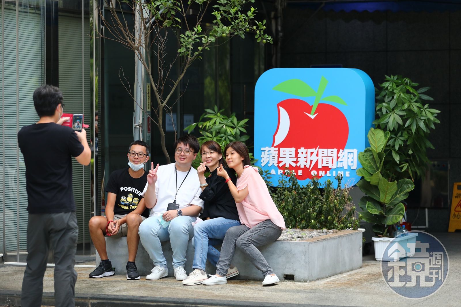 而下午在《台蘋》大樓外,也有多家攝影媒體聚集欲捕捉《台蘋》的最後一日畫面,更有許多員工紛紛和蘋果logo進行合照,繼香港《蘋果日報》收攤,今日,與台灣民眾一同走過19年歲月的台灣《蘋果日報》,也正式宣告走入歷史。