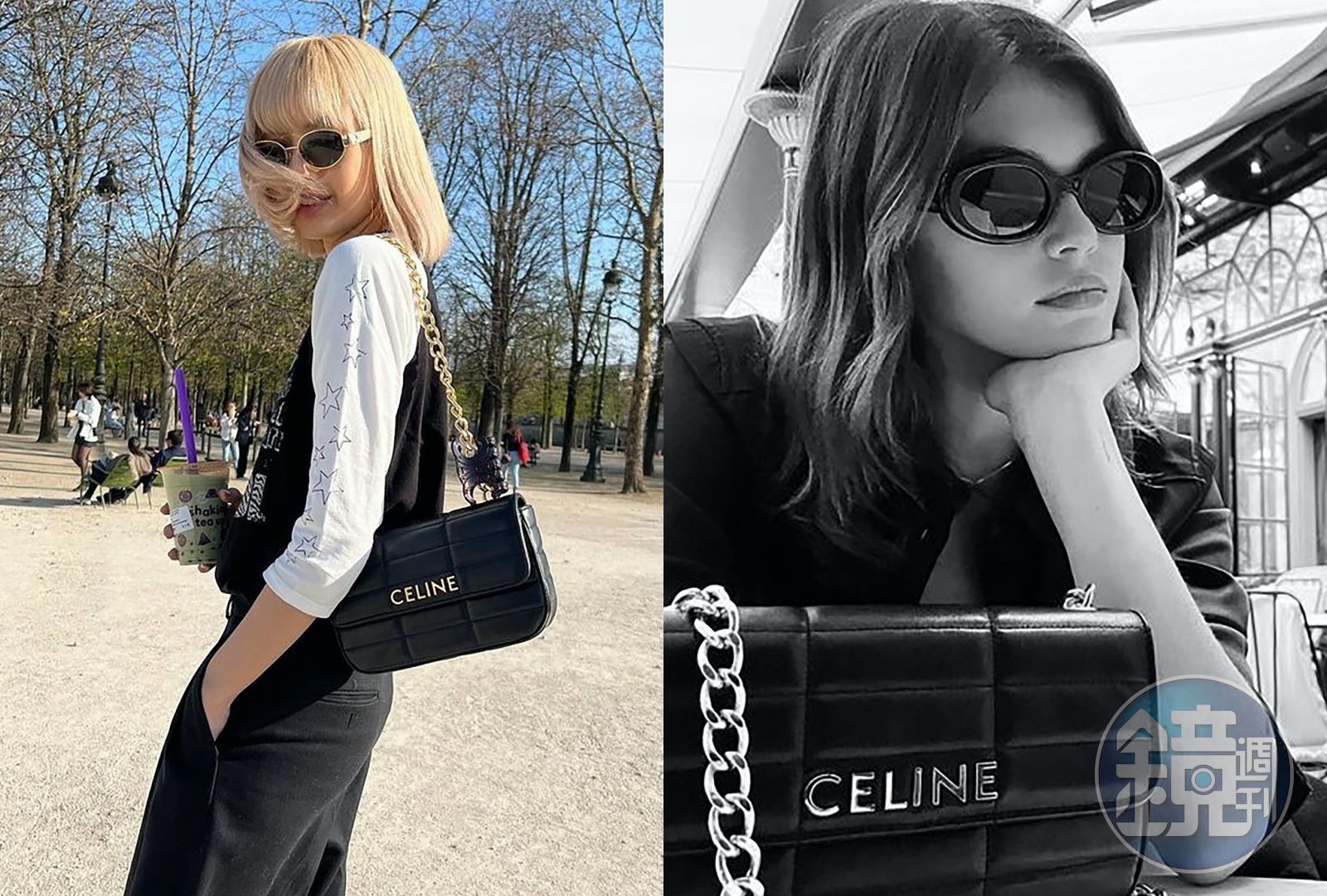 LISA(左起)、Kaia Gerber率先示範MATELASSÉ MONOCHROME包款。(CELINE提供)發布時間:2022.09.02 17:12 臺北時間