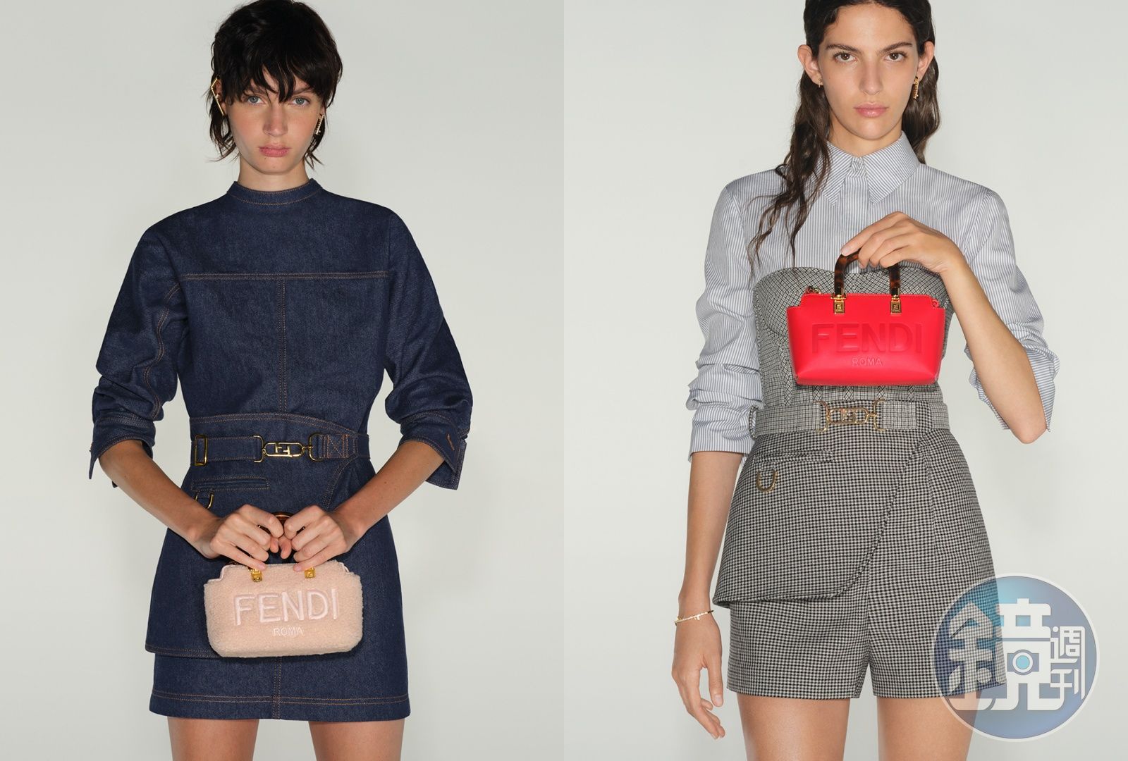 Mini By The Way包款保有波士頓包的經典形狀和比例,再加上FENDI豐富的設計密碼如堅固耐用的玳瑁效果有機玻璃手柄,以及帶有FF logo圖案的金色金屬細節,在包身上增添一抹珍貴感。在Mini By The Way包身正面,以熱壓或刺繡工藝製作出同色系的FENDI Roma logo圖案。
