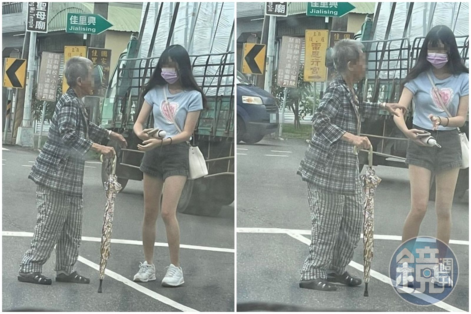 一名男網友在臉書「爆廢公社」發文表示,今開車等紅綠燈之際,目擊一名老奶奶緩慢穿越馬路,身後一名長髮正妹隨即主動上前攙扶老奶奶,而老奶奶也緩緩抓住她的手腕,超感人一幕讓原PO瞬間暖上心頭。