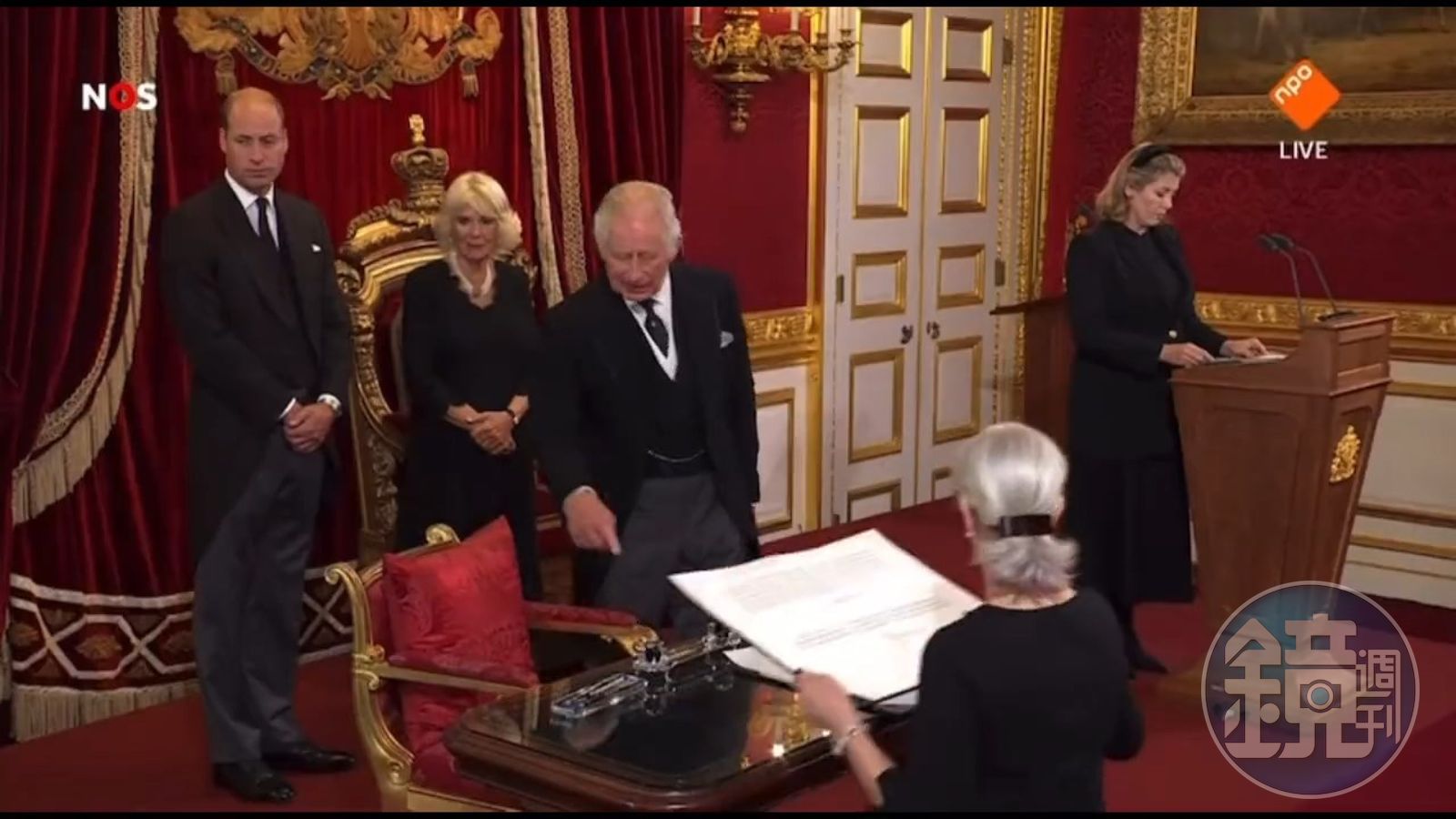 就在本月10日,查爾斯於聖詹姆斯宮(St James's Palace)舉行國王即位宣誓儀式,隨後他準備以國王身分,首次簽署皇室文件。現場不僅全程直播,王后卡蜜拉與威廉王子站在後方,所有文武百官也都在場觀禮。