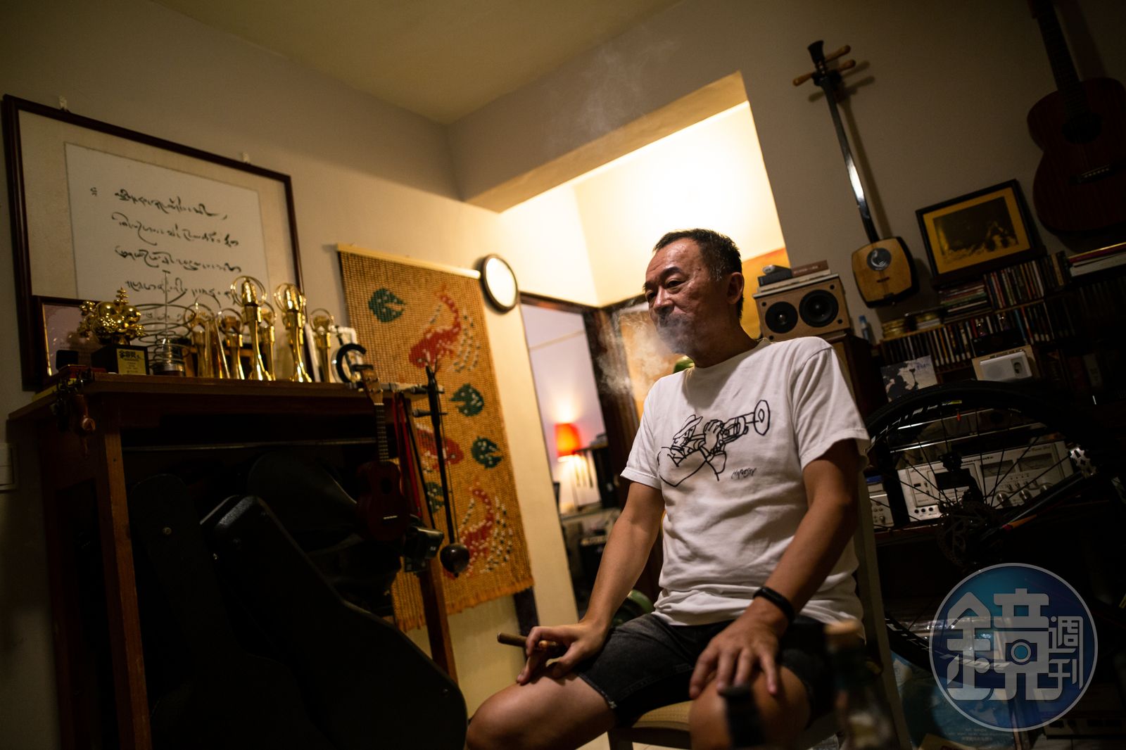 走進黃連煜的工作室,客廳、房間滿櫃的黑膠、CD,從五輪真弓、徐木珍、橋幸夫到馬友友,他還有北勢寮車鼓團的卡帶與舊型播放機,但LED電視螢幕播放的是他用Apple Music選放、美國爵士詩人吉爾伯特赫倫的念白,聊到當紅的Netflix韓劇,他早追上最新進度,近期他最想合作的對象是電子黑魔女「鹿比∞吠陀」。抽一口雪茄,他像朋友一樣問我們最近有什麼推薦原聲帶、韓國獨立音樂。黃連煜兒子的朋友、親近的晚輩都叫61歲的他「煜哥」,而不是「黃伯伯」。