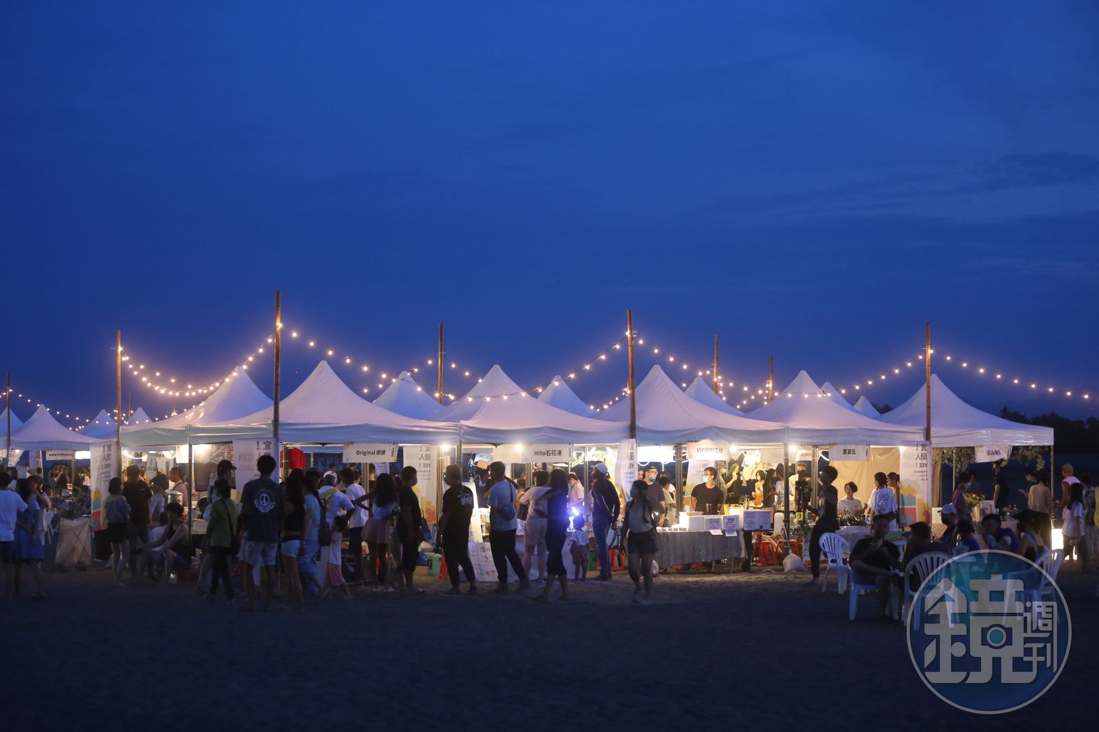 例如這次跟東北角風景管理處合作,選擇外澳沙灘,又是暑假的音樂會,活動日期也在開學前的最後一個週末,因此設定了「真。不想開學After Party」,在店家招募上,就會選擇適合海洋氣氛、相關運動及文化有關的,餐飲部分選擇適合在海邊吃喝,而文創部分的選擇像是衝浪手環等比較符合潮流的商品。
