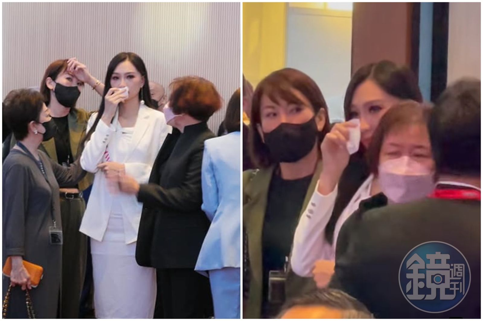 台灣佳麗高曼容出席2022世界創新與科技大會開幕式,卻因中國施壓無法上台揮舞國旗,難過流淚。(翻攝自余宛如臉書) 原來高曼容準備上台前的最後一刻,主辦方受中國施壓不准台灣佳麗上台。余宛如親眼目睹整個過程,並用手機錄下高曼容難掩傷心落淚的畫面,當下台灣代表團大喊「Taiwan Go!」替她加油,讓現場來賓知道台灣佳麗也有出席。事後主辦單位有派人向高曼容致歉,表示對台灣佳麗很愧疚,但余宛如仍對中國打壓感到相當不滿。