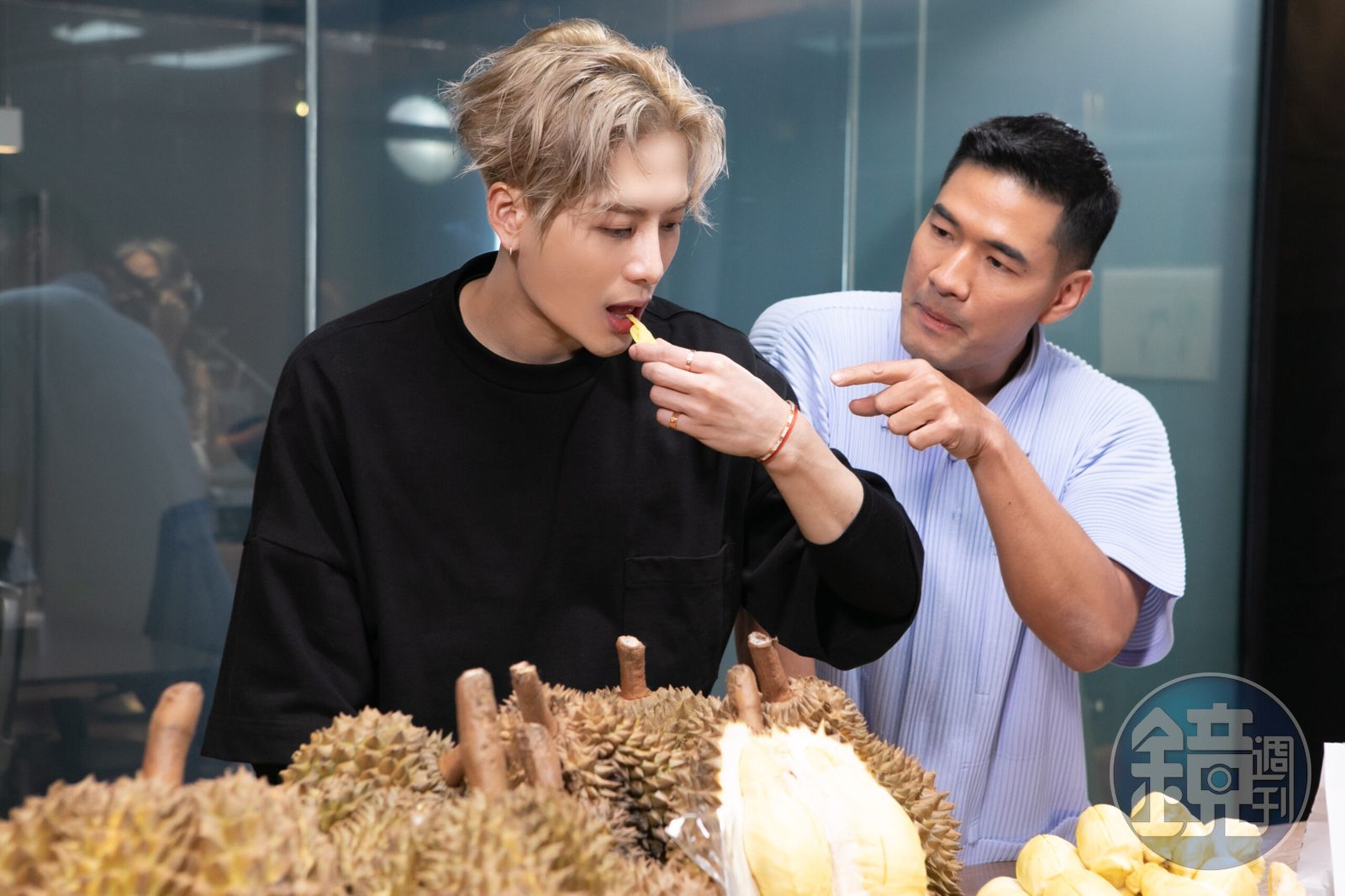 王嘉爾在Woody節目上吃榴槤,竟也成為一個討論度很高的話題。(翻攝自WOODY YT頻道)發布時間:2022.09.15 06:24 臺北時間
