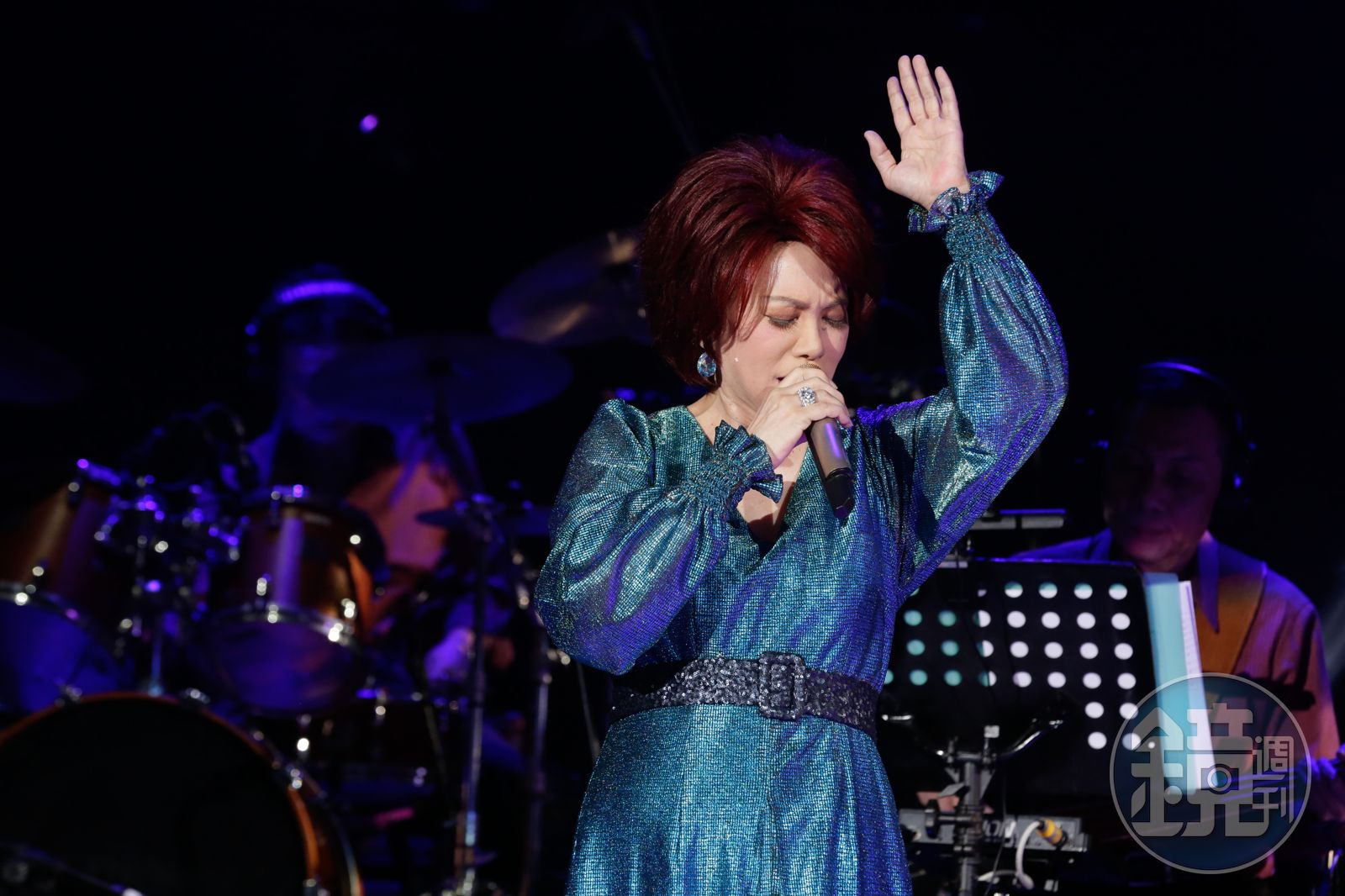 一開場蔡琴身穿咖啡金亮片禮服開唱揭幕,而她胸前「深V」開到肚臍,雖然仔細看後還是有襯衣防護,不過依然是她最突破尺度的造型,而她開心又激動得跟粉絲說:「這疫情後,我學會最好的一件事是害怕、壞心眼會傳染,但不要忘了,好心情也會傳染。」