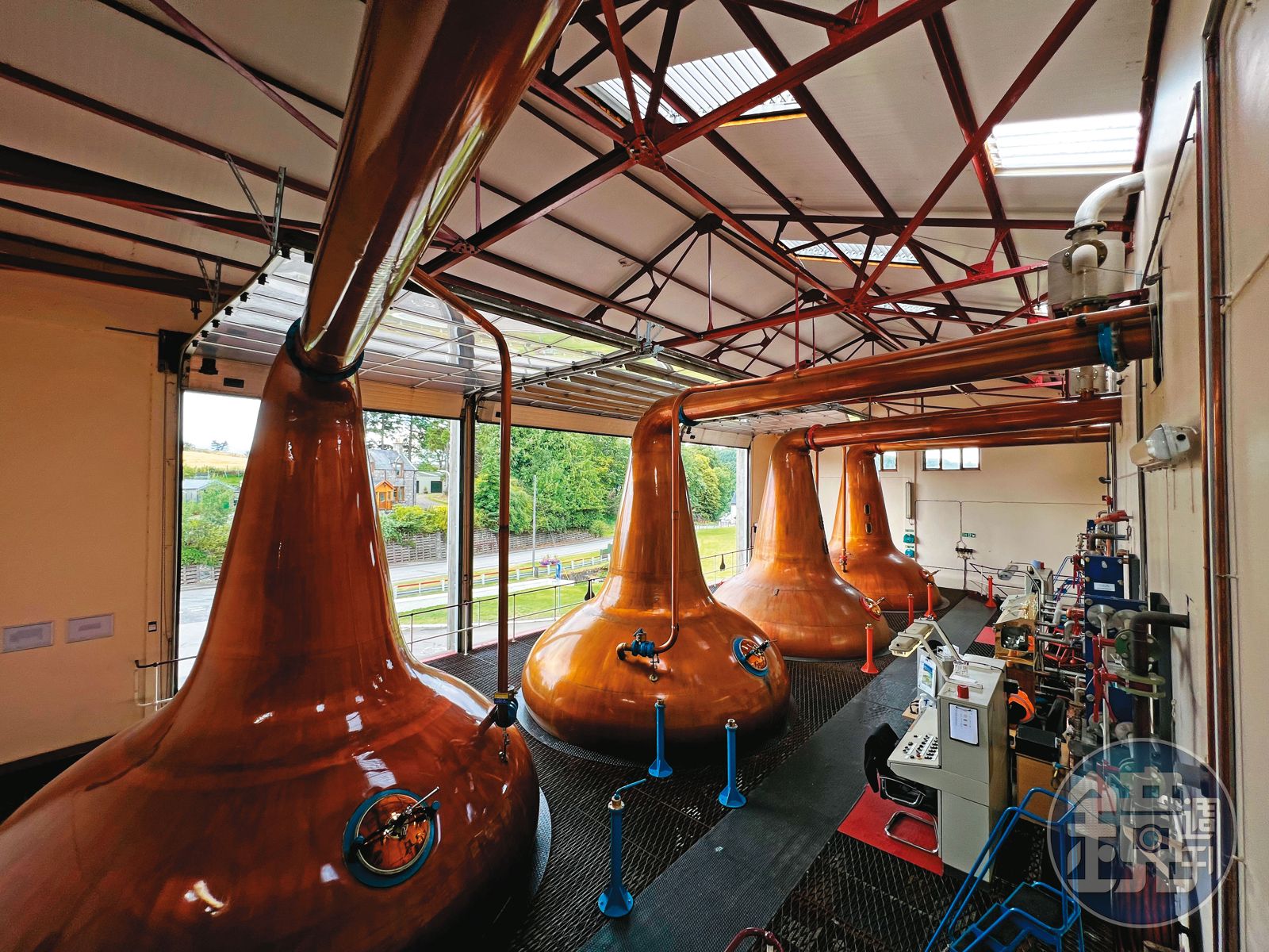 魁列奇的半開放蒸餾室,是1960至70年代、隸屬UA集團擴張建造的酒廠樣式,其他如皇家柏克來、雅墨、格蘭杜蘭、艾柏迪的蒸餾室也都是此類。走進蒸餾室,可見4支蒸餾器,雖數量不多,但都頗為寬大,為了釀出渾厚酒體,林恩臂長度長且角度水平,並直接穿越蒸餾室牆面到外頭,如何銜接酒廠傳說中的蟲桶,令人好奇。