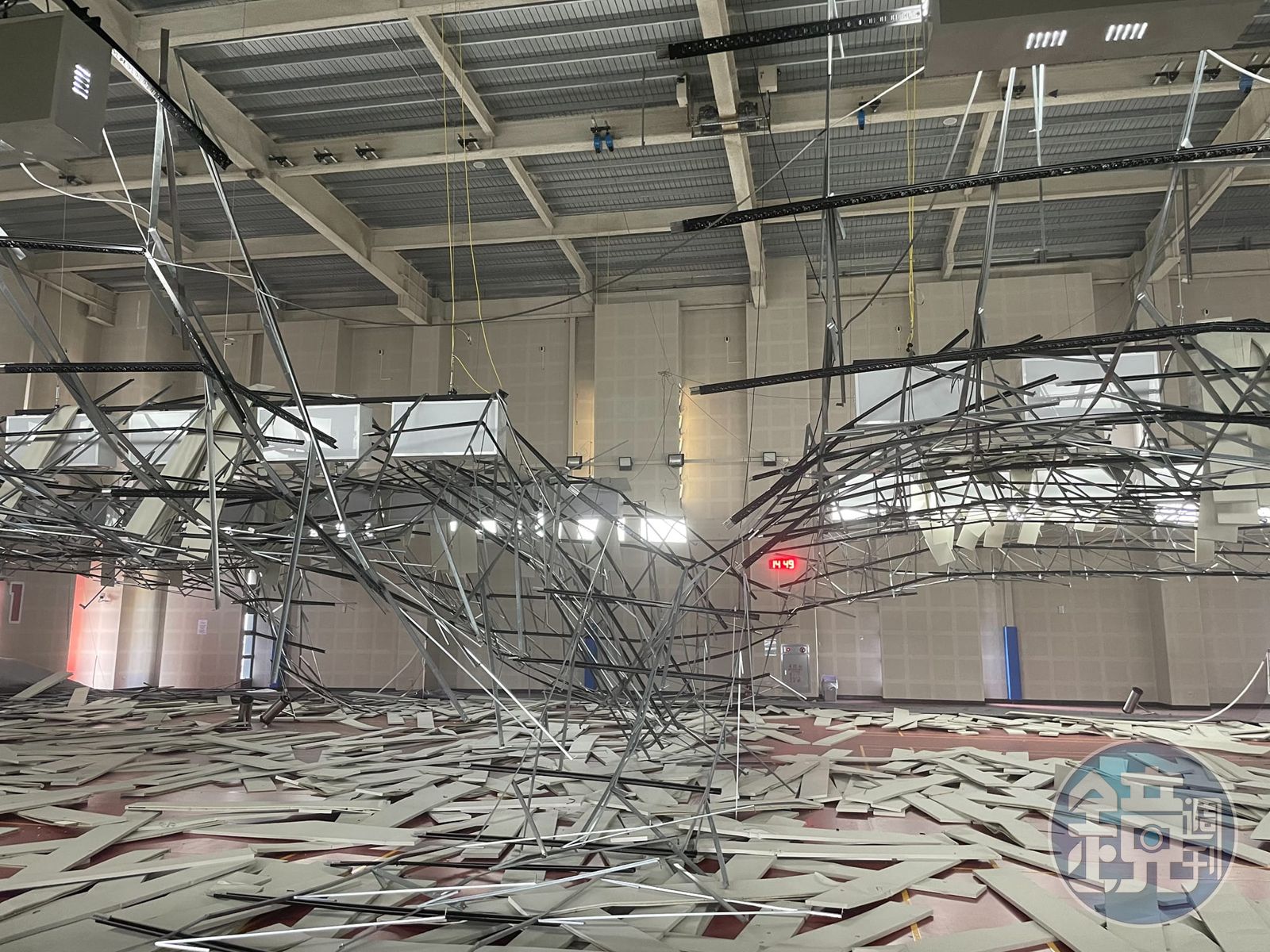 隨後也有民眾分享場地受損情形,新裝好的燈具看似沒有問題,但整個球場的天花板的隔音板坍塌一片,鋼條散落滿地。據悉當時有許多民眾仍在場內運動,發生地震後隔音板隨之掉落,眾人紛紛走避逃難,有人直呼畫面相當驚悚「還好跑得快」,還有人說明明桃園地震才3級,就把隔音板震壞,質疑施工品質。