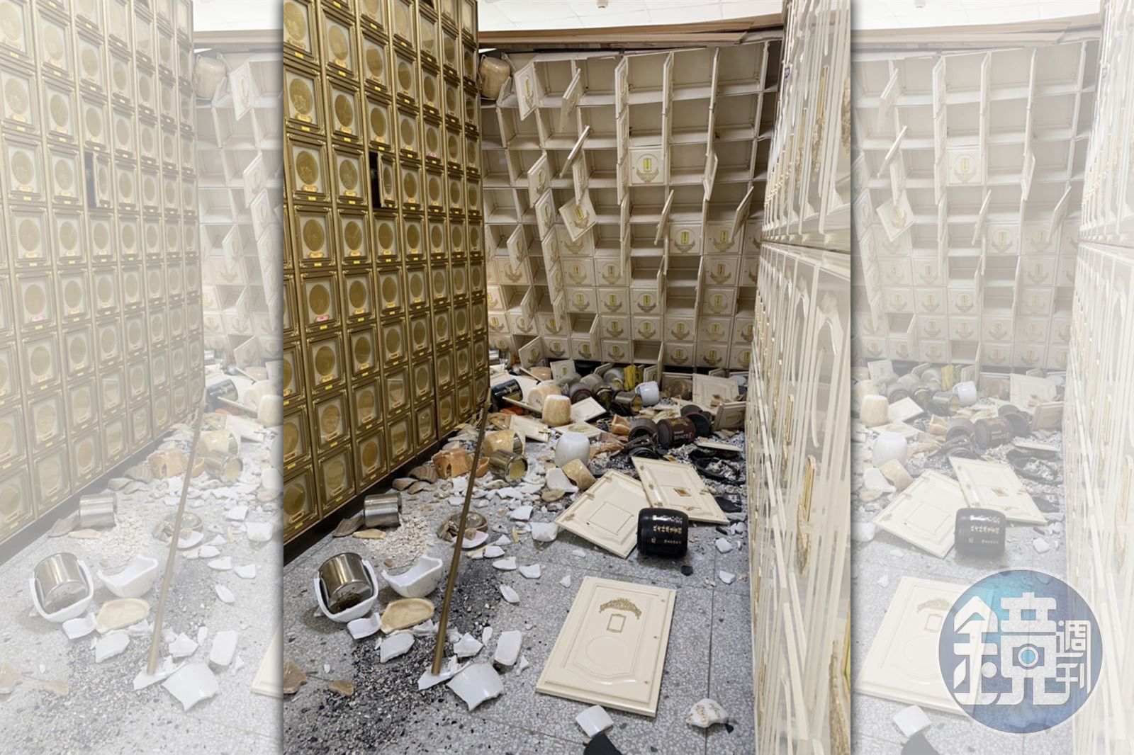 鍾青柏說,納骨塔災損分3種情形,第1種是納骨櫃傾斜,骨灰甕未破裂,處理方法是將納骨櫃扶正修復並加強防震;第2種是骨灰甕破裂,但並未與其他安厝者的骨灰骸混合,處理方法是將購置骨灰甕重裝後安置櫃位,第3種最嚴重的是納骨櫃倒塌,多數骨灰罈甕破裂、骨灰已混合難以分辨。