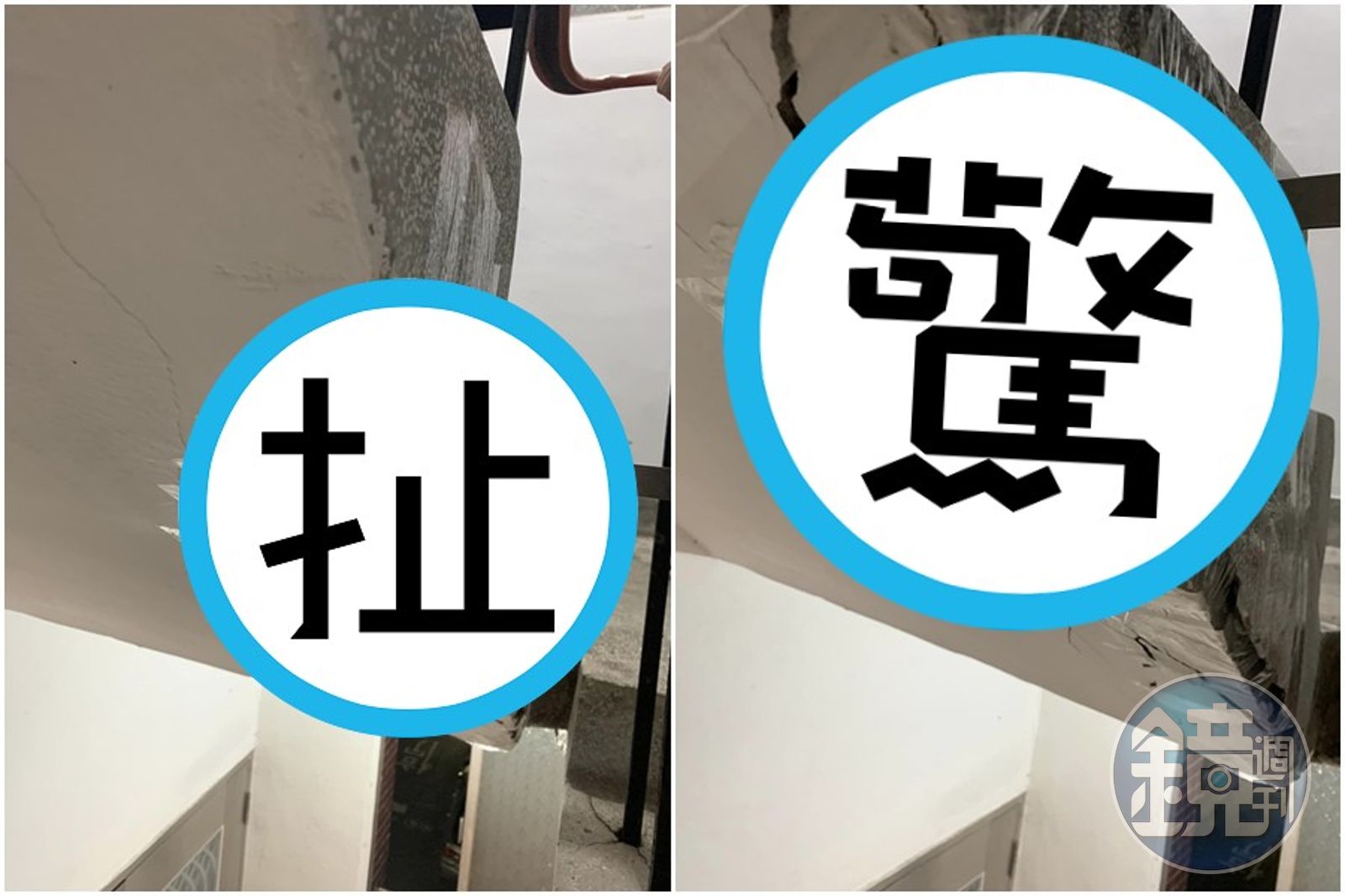 一名網友在臉書社團「爆料公社」發文表示,「我見過最厲害的樓梯修補作業,一定能安全度過地震!」並附上2張樓梯間的照片。照片中樓梯背面出現大片裂痕,看起來有安全上的疑慮,但修補方式竟然只是用透明膠帶貼住而已。
