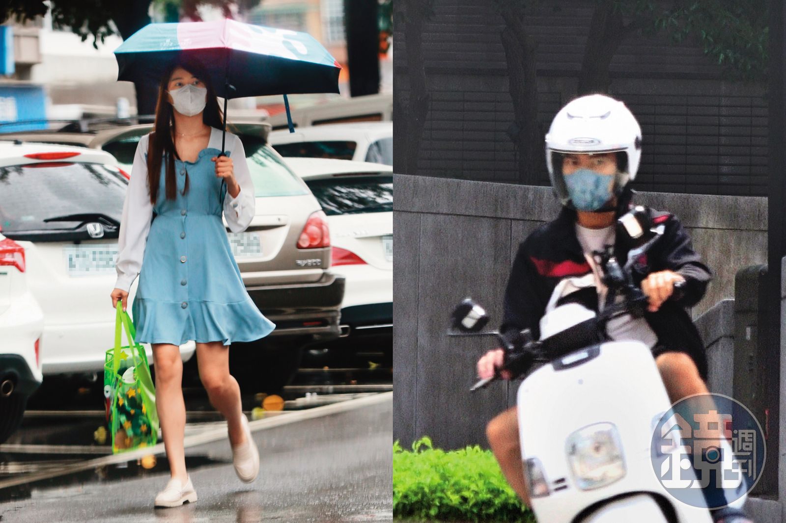 9/13,13:47,表面上恢單的謝京穎,經常獨自出入工作場合。9/14,00:26,謝京穎開車回家,卻刻意在停車場的入口等了一下。謝京穎準備進自家停車場後,竟然跟一名在大雨中騎著機車等待的男子先會合,才雙雙進到社區大樓。根據仔細觀察,該男正是許仁杰無誤!本刊進一步發現,許仁杰的機車原來根本沒停在民視,所以他是專程冒著雨到謝京穎家等她。