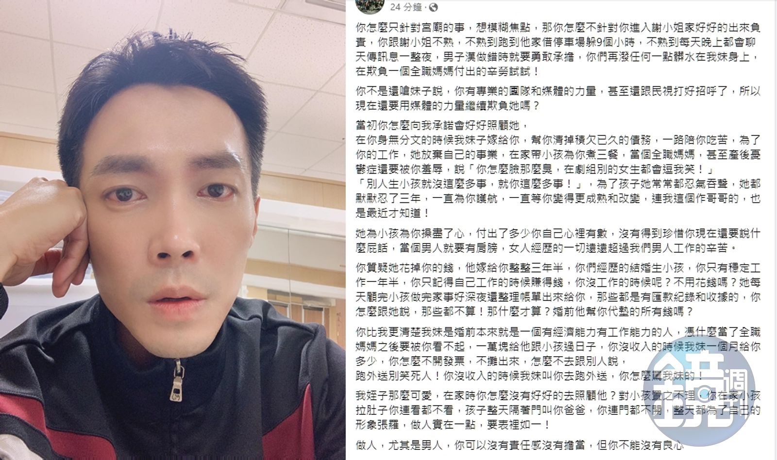 該名男子公開在臉書上嗆許仁杰:「當初你怎麼向我承諾會好好照顧她(亞希)。」並稱許仁杰在亞希產後憂鬱時酸她:「妳怎麼臉那麼臭,在劇組別的女生都會逗我笑!」