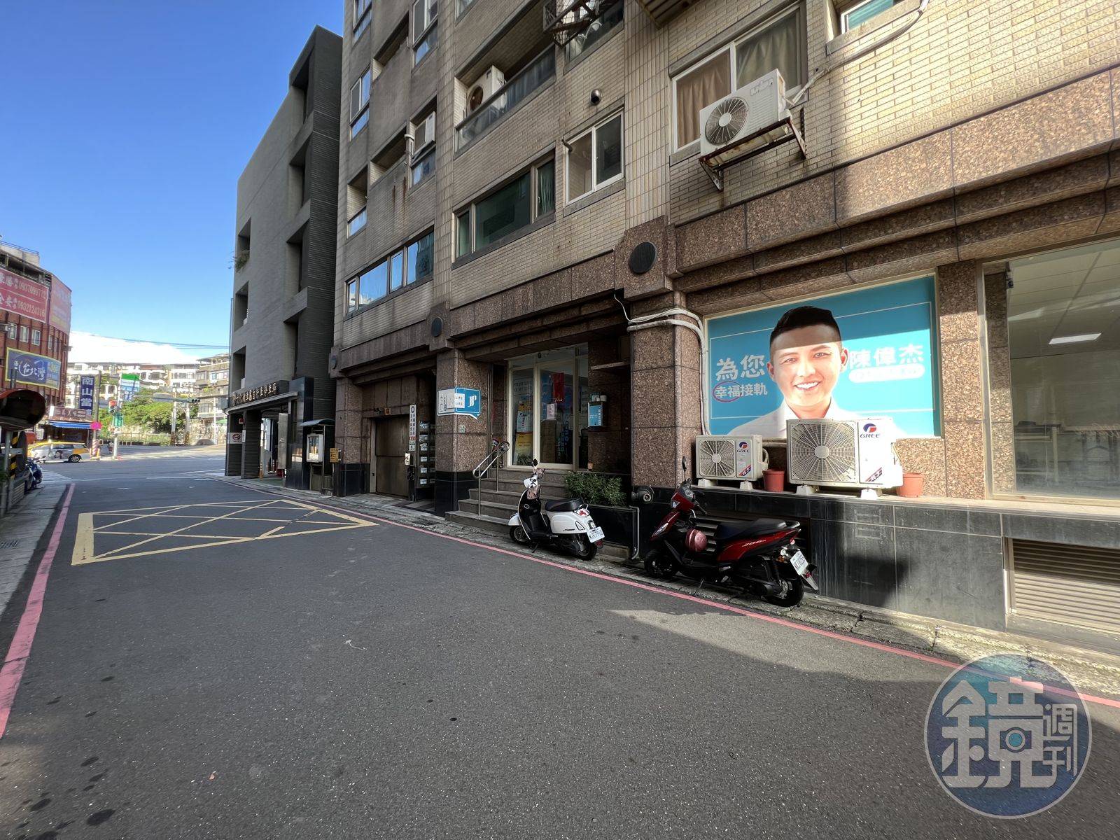 21日下午,本刊實地走訪新北市淡水區文化路59巷、議員陳偉杰被爆料的紅線違停現場,巷口就是文化區機車停車場,隔條巷子就是淡水三民停車場。機械停車場出來就是黃網線,還有轉彎處的反光鏡,陳偉杰將BMW車違停在接近轉彎路口,成為視線死角,比亂停的汽機車還危險。