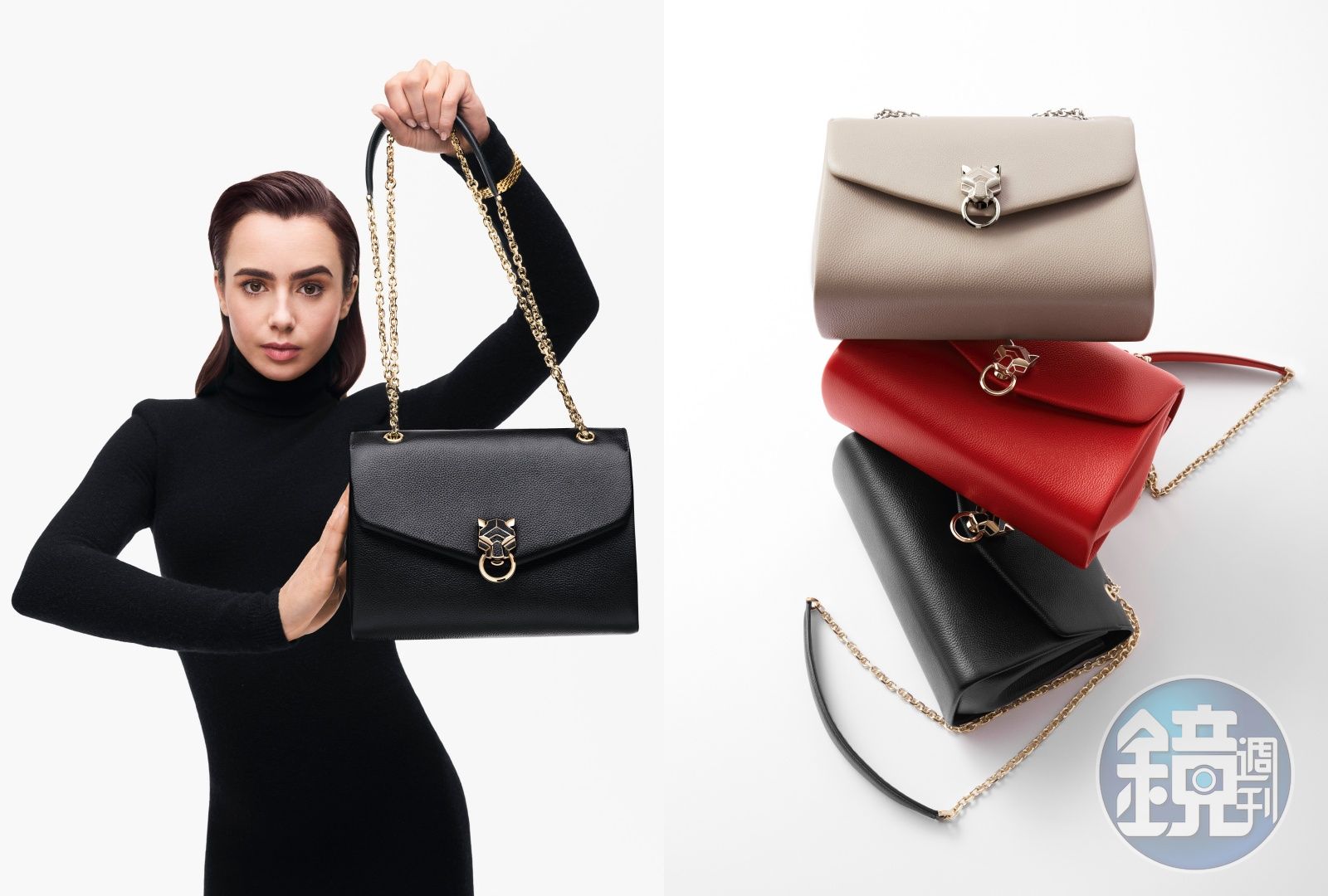 Cartier(卡地亞)日前推出全新的Panthère de Cartier美洲豹鍊帶包款,運用豹首銜環的造型搭扣、打磨過後的鍊節、充滿風格的立體輪廓,將皮件與珠寶工藝完美融合,打造都會女子的時尚風範,讓包款不僅僅是是一款鍊帶包,更是一種態度。