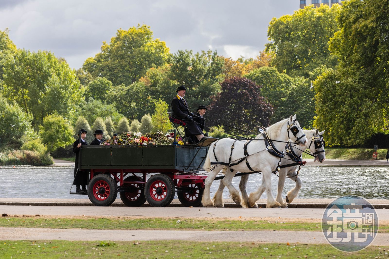 女王過世後,成千上萬的民眾到白金漢宮外頭送花、寫卡片、送玩具、蠟燭等,向他們最愛的女王致敬。這些花、禮物、卡片等,會被轉送到白金漢宮附近的綠園(Green Park)供人欣賞,占地19公頃的綠園早已成花海。