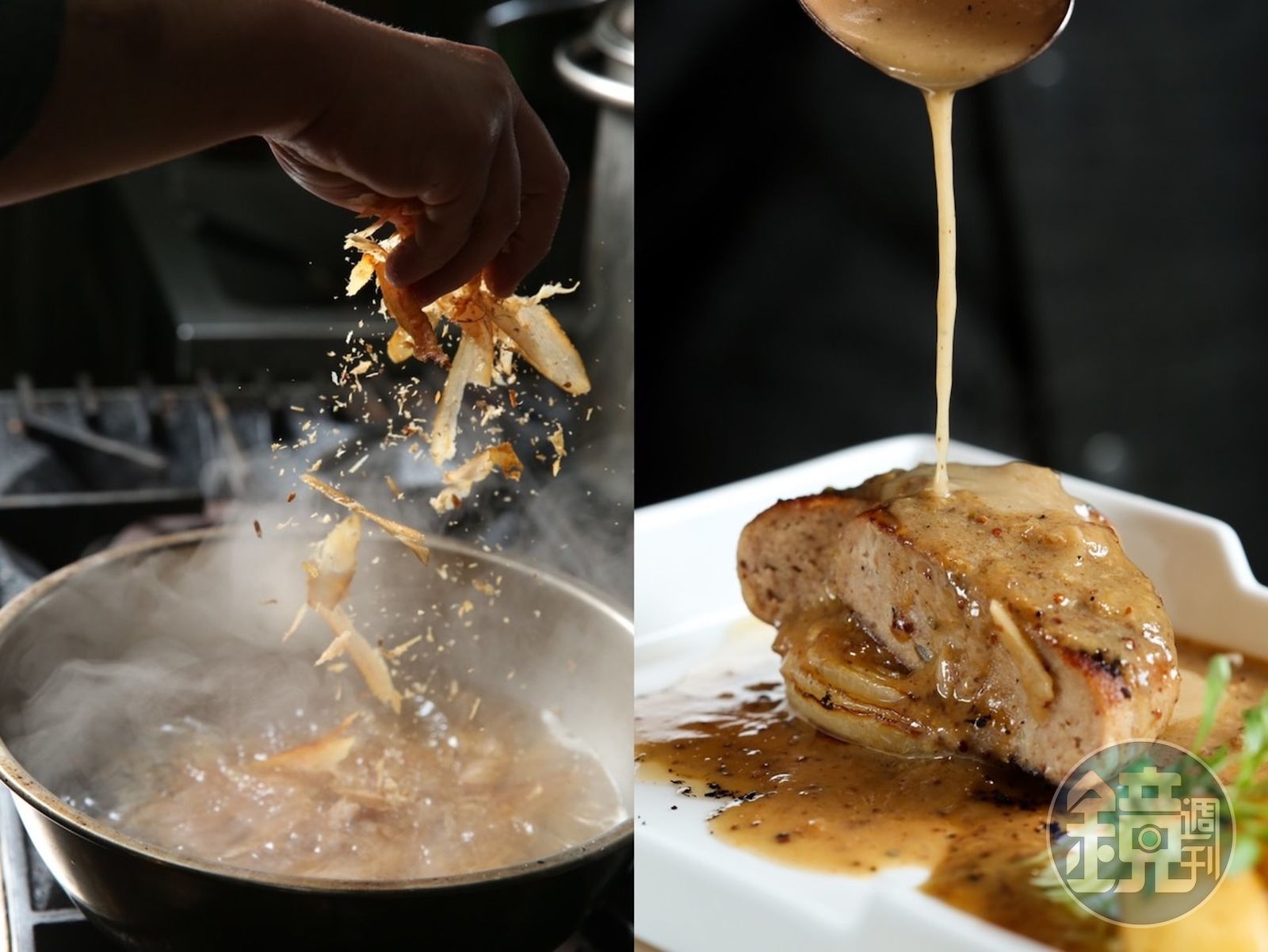 取出魚子之後的烏魚肉較少人喜愛,這時和邱經堯有好交情的飲食作家番紅花前來助拳,她研發的「烏魚好蝦韮菜水餃」「鱸魚好蝦高麗菜水餃」「烏魚好蝦九層塔水餃」是豪華版的海味鮮餃;李家維還熬了蝦湯,這下中菜西吃變身「白蝦濃湯生態水餃」,一道菜色充滿生產者、料理研究家和廚師三方聯手的惜物之情。