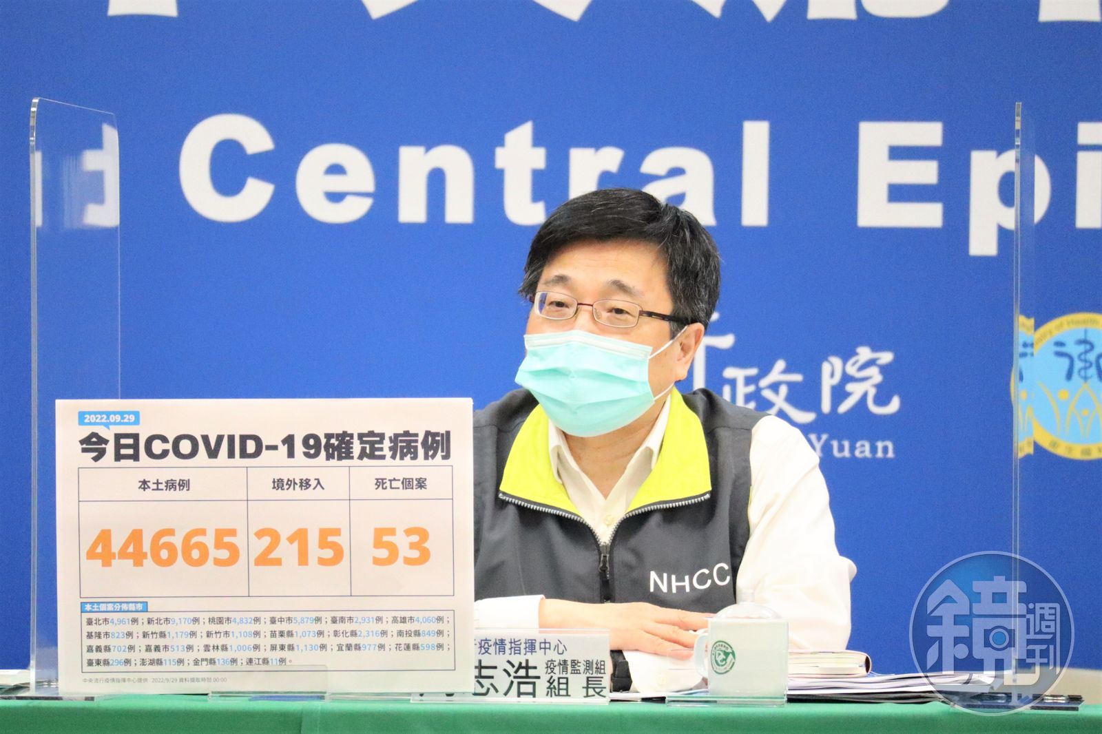 指揮中心表示,今日新增之44,665例本土病例,為20,412例男性、24,234例女性、19例調查中,年齡介於未滿5歲至90多歲以上,個案分布為新北市9,170例,台中市5,879例,台北市4,961例,桃園市4,832例,高雄市4,060例,台南市2,931例,彰化縣2,316例,新竹縣1,179例,屏東縣1,130例,新竹市1,108例,苗栗縣1,073例,雲林縣1,006例,宜蘭縣977例,南投縣849例,基隆市823例,嘉義縣702例,花蓮縣598例,嘉義市513例,台東縣296例,金門縣136例,澎湖縣115例,連江縣11例。
