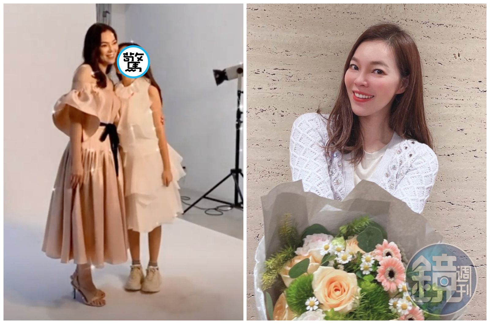 曾馨瑩今在IG限動貼出與妞妞為公益活動進行拍攝的側拍,可見曾馨瑩穿著粉紅色一字肩洋裝、高跟鞋,妞妞則穿白色蓬蓬裙、球鞋,13歲的妞妞身高已快要跟媽媽一樣高了。母女倆肩並肩、妞妞還轉過頭作勢要親媽媽,感情相當好。