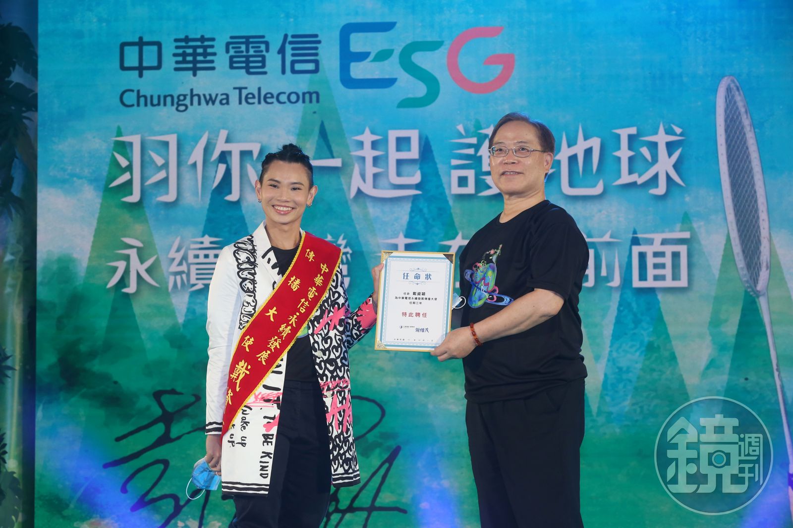 謝繼茂同時宣布,中華電信未來3年內持續支持羽球好手戴資穎,舉凡國內外任何羽球賽事,戴資穎只要贏一場,中華電信隨即捐贈100顆樹木,聯手林務局啟動植樹造林計畫,目標在3年內種植1.5萬顆樹。