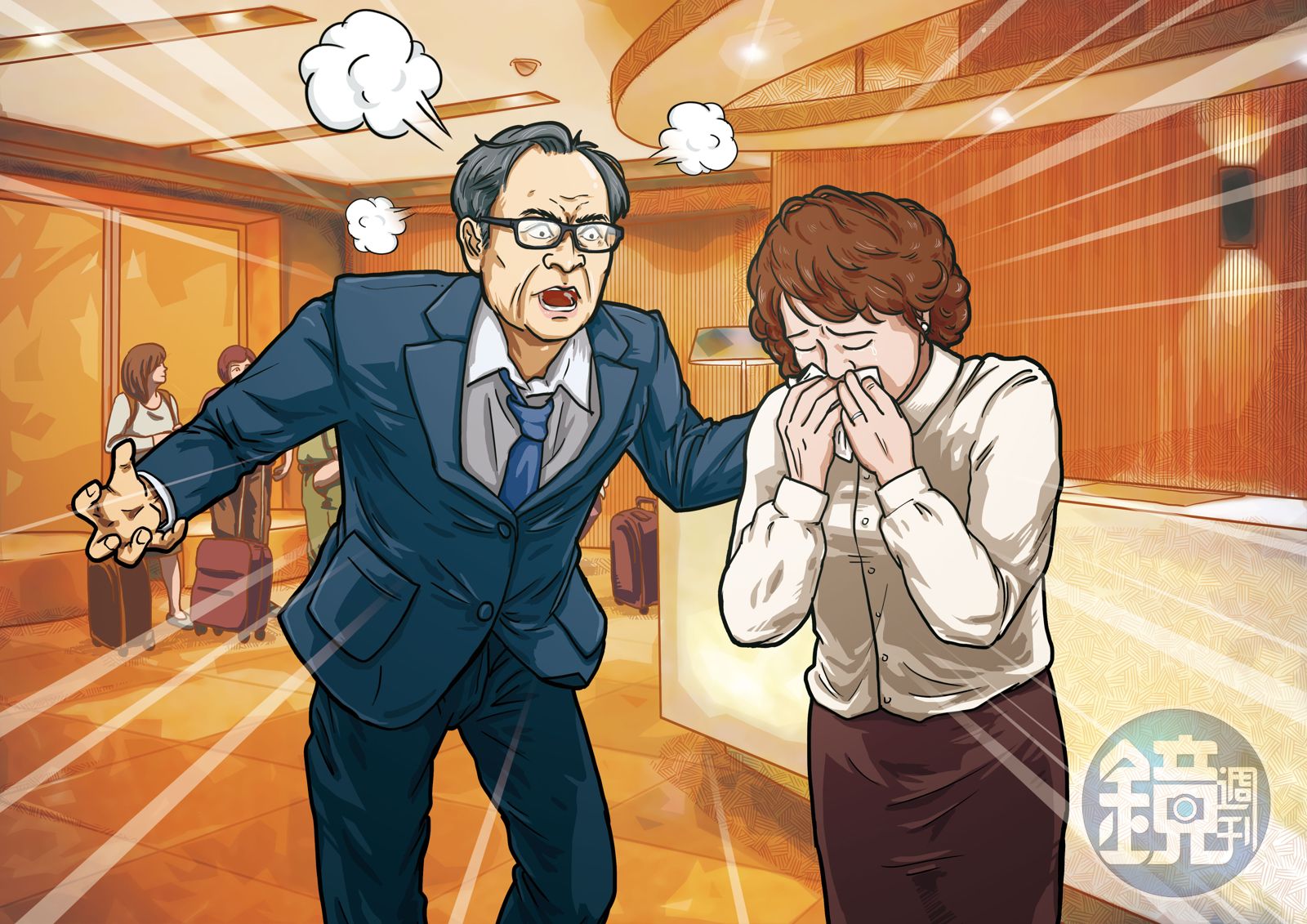除了言語騷擾,謝還常用眼神緊盯女下屬,注視長達數分鐘,女下屬為了避免尷尬,只能假裝沒看到、刻意忽視主委的眼神,C女還指出,謝與下屬站著聊天時,完全不會保持安全距離,甚至肩碰肩站在女下屬身邊。「女生如果往旁邊跨一步,他就再緊黏上去,真的很噁心!」C女說,但因謝是最高首長,下屬擔心鐵飯碗不保,根本不敢申訴,只好默默吞忍。