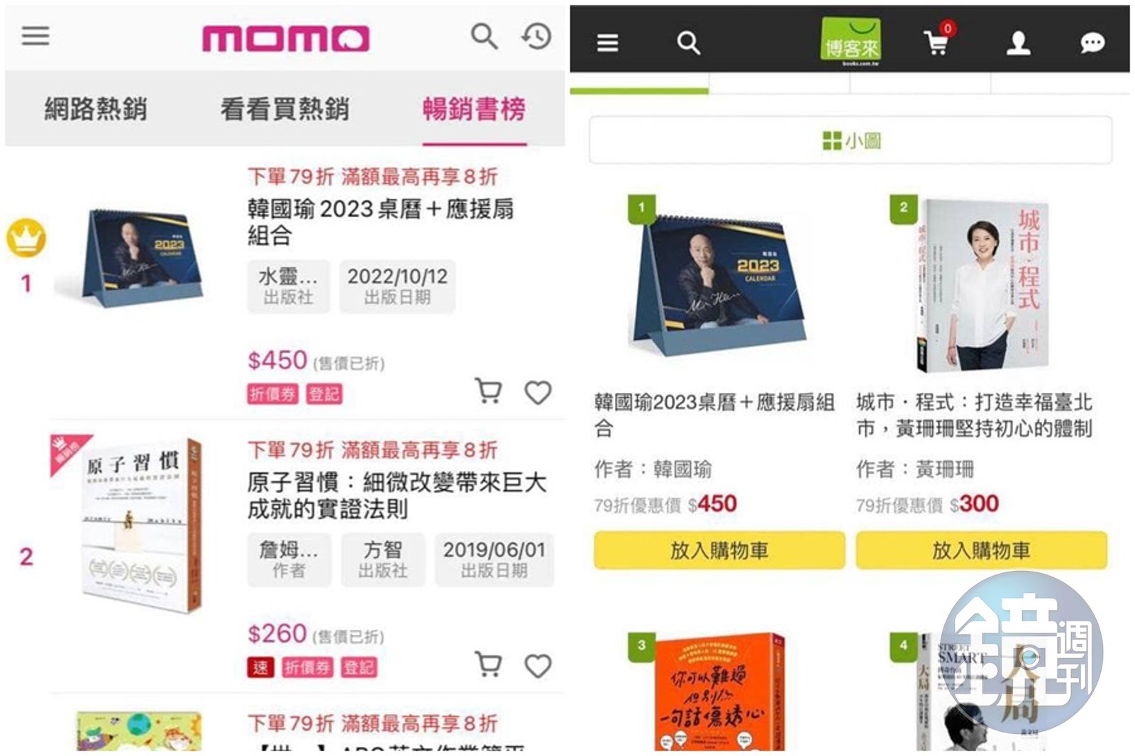 韓國瑜推出的「韓國瑜2023桌曆+應援扇組合」才開放預購不到一天,就登上MOMO購物網及博客來銷售冠軍。(翻攝自韓國瑜臉書)發布時間:2022.10.04 22:18 臺北時間