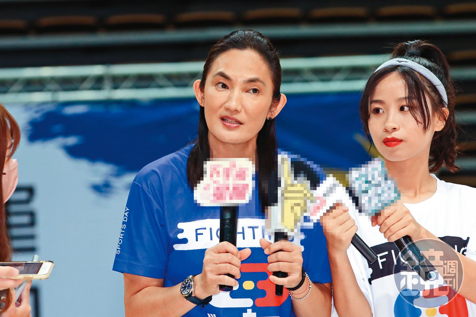 日前錢薇娟(左)接受本刊訪問,吐露她帶《全明星運動會》藍隊的心路歷程,尤其第4季賽事成績暫居劣勢,但她自省需要改變方式,希望未來能拿下更棒的戰果。右為賴Ki。發布時間:2022.10.05 05:58 臺北時間
