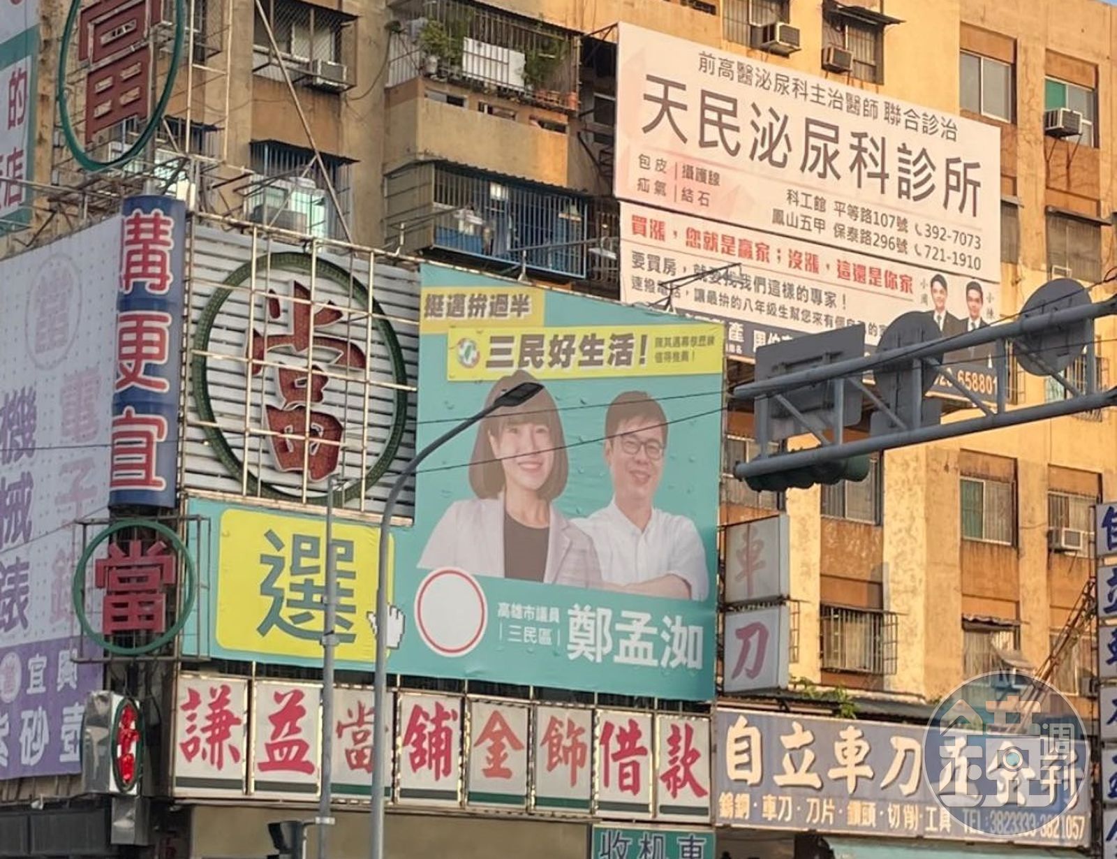 一名網友昨(4日)在臉書社團「路上觀察學院」PO出圖文,稱讚「把廣告放在當鋪店面太聰明了吧!」原來是高雄市議員鄭孟洳與市長陳其邁合體的競選廣告,左上角刻意缺了一角,讓當鋪招牌的「當」露出來,再搭配看板上的「選」,合在一起就是「當選」。