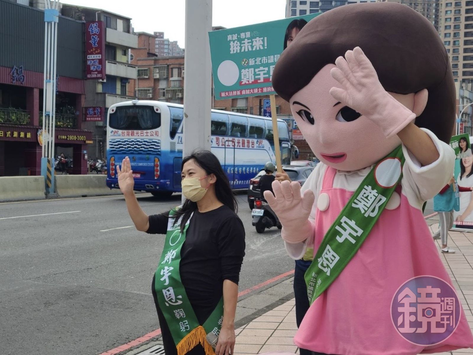 鄭宇恩說,最近帶著大頭娃「粉紅妹」到淡水、八里、三芝、石門選區實習拜票,及與地方鄉親問好說話,看見「粉紅妹」受到大小朋友喜愛很是歡喜,「許多鄉親對著我們說加油、讓我多休息,真的很感謝大家的體諒。」鄭宇恩強調,生產期間亮相的任務暫時交由大頭娃「粉紅妹」代打上陣,團隊也會持續服務,自己則會趕緊恢復體力返回戰場,希望鄉親能繼續支持、年底得以順利連任。