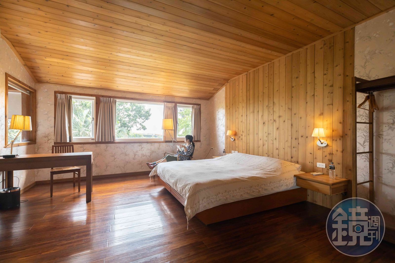 旅棧主人陳詠昇一開始打造這棟讓人猶如置身美國莊園的兩層木屋,並非為了經營民宿,而是為了自住。雖然改造的艱難過程讓他回顧起來仍面露無奈,卻也發現近乎全木造的空間,真是每一寸都用了心,除了能伴隨著木質香氣入眠,空間寬敞到做瑜伽還有餘裕的露台,更能直接貼近微風吹拂的綠蔭。