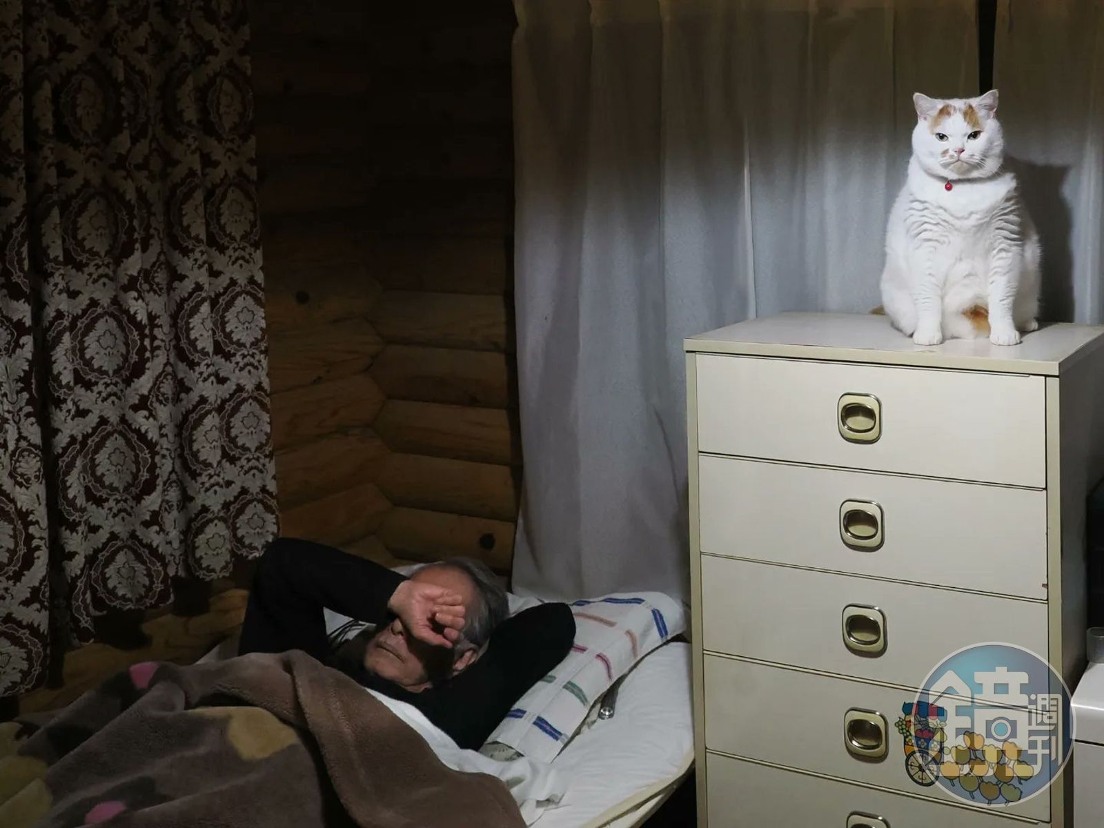 日本推主@marco74444是一名攝影師,經常分享老家貓狗的互動,生動畫面深受網友喜愛。日前他上傳一張照片,只見一隻看似稍有份量的橘白色貓咪坐在五斗櫃上,臉上表情相當霸氣,左下角則有一名躺在床上正在睡覺的男子,@marco74444在文中寫道,聽說牠每天凌晨3點都會從這櫃子跳到老爸的肚子上,心情好的話還會踩奶,「爸爸說『總之就是超重、很痛苦』」。