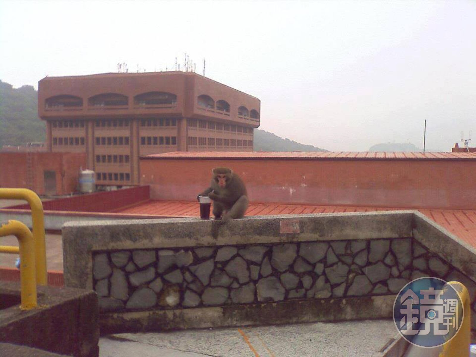 一名網友在臉書社團「爆廢公社二館」發文,表示「沒到過中山 你永遠不知道猴子已經進化到這種程度」,並附上一張照片,畫面中的猴子坐在圍牆上,右手邊有杯7分滿的飲料,牠用右手扶著飲料、左手握著吸管,並直盯著攝影者。