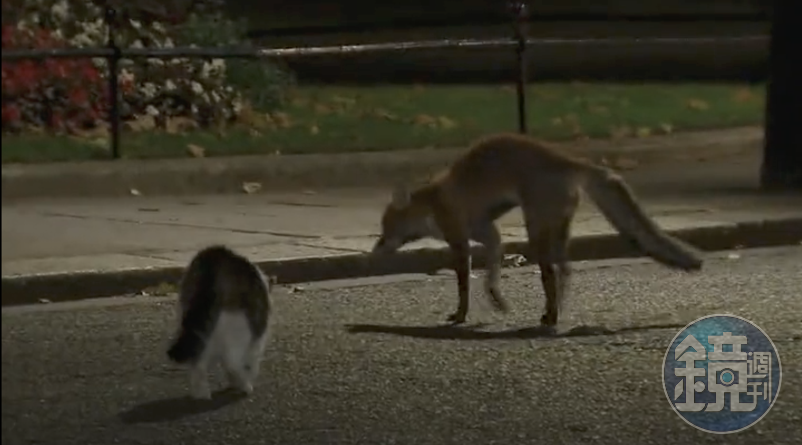 根據英國《天空新聞》(Sky News)拍攝的影片,當地時間10日晚間10點,一隻狐狸走入唐寧街10號的領域,此時,賴瑞走向前,一直跟著狐狸,雖然身形只有對方的一半大,但賴瑞氣勢逼人,彷彿在告訴狐狸:「這裡不歡迎你,快給我離開!」隨後狐狸跑到了附近的灌木叢裡。