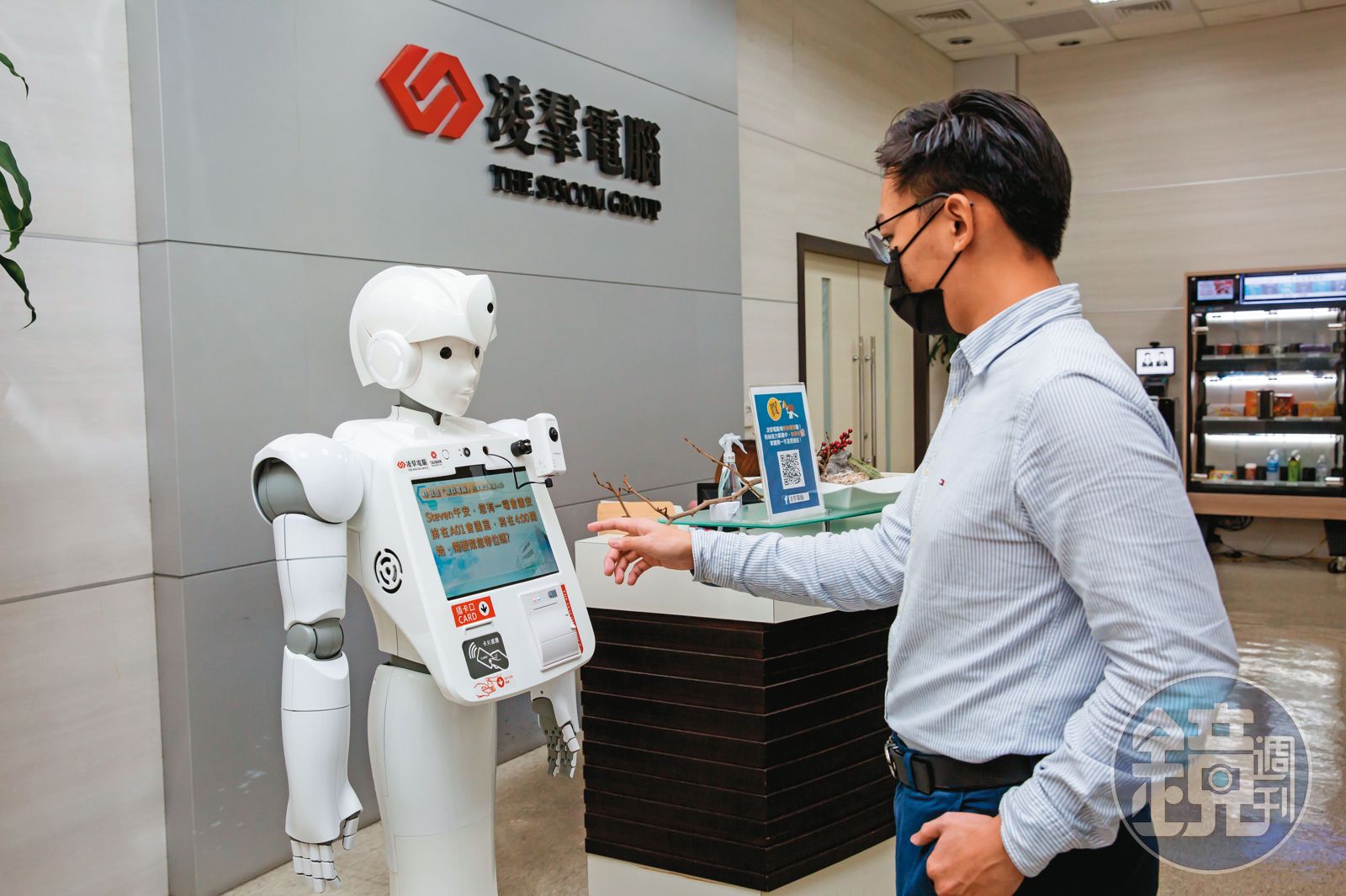 「花蓮國軍醫院是我們第一個客戶。」楊宏祥興奮說道。一開始主要用做迎賓、帶位,民眾可在機器人的螢幕上點選要去的科別,它就會親自帶你到正確位置,而後再重回原本位置,等待下個使用者。凌羣軟體產品推進處處長張庭榕指出,後來推出新版的機器人增加了慢性病連續處方箋領藥及藥品查詢等功能,讓病患只要在機器人上掃處方箋條碼便能拿到藥單,直接到藥局領藥,大幅降低醫護人員的人力消耗。