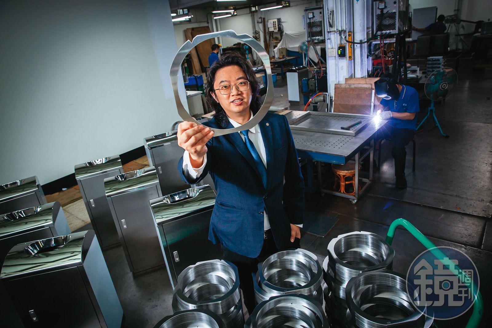 留著一頭瀟灑捲髮的林佑嘉今年37歲,是帶領傳統不鏽鋼廠走向外銷的關鍵推手。黑手工廠拿下大訂單,跨入高科技護國產業鏈,他不居功,但語氣難掩興奮,「我們行銷人員很用心,沒想過這麼有名的公司會找上我們,這是很大的鼓勵。」