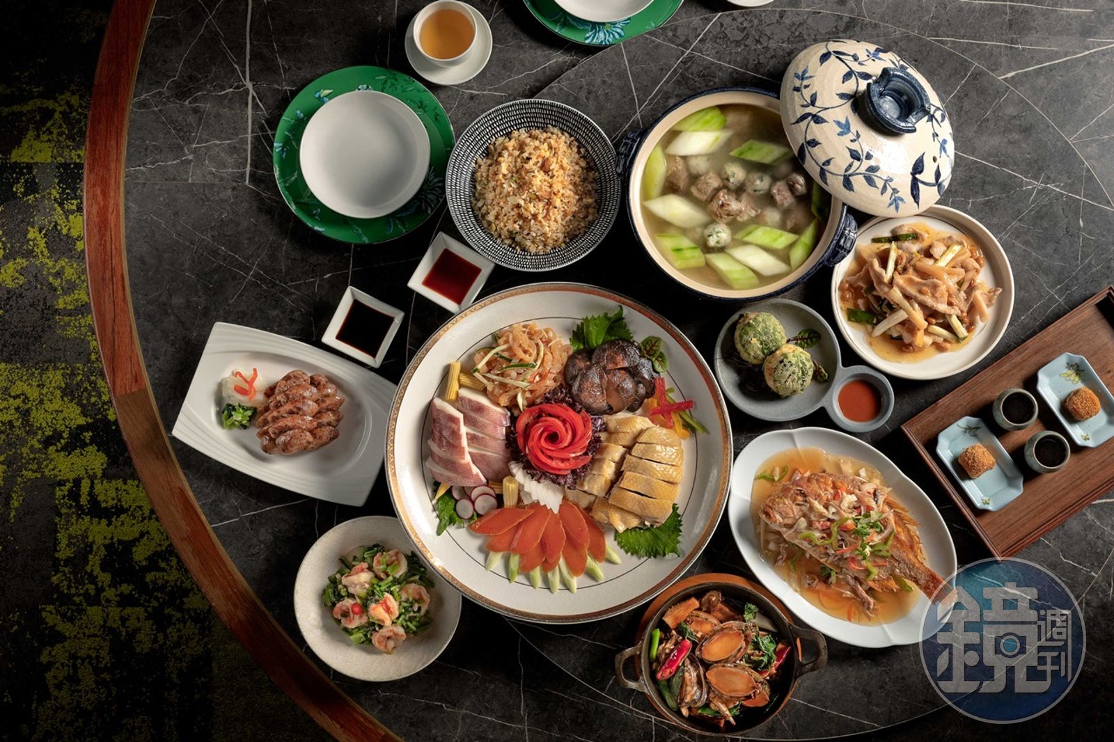 身為台灣傳統宴席菜裡的重要首盤地位,一定要夠澎湃,才能彰顯主人誠意與廚師功力。欣葉・鐘菜的冷菜盤中以五福拼盤最受歡迎,包含太監雞、五味軟絲、香烤烏魚子、海蜇皮、滷花菇,賣相討喜,海陸美味兼具。