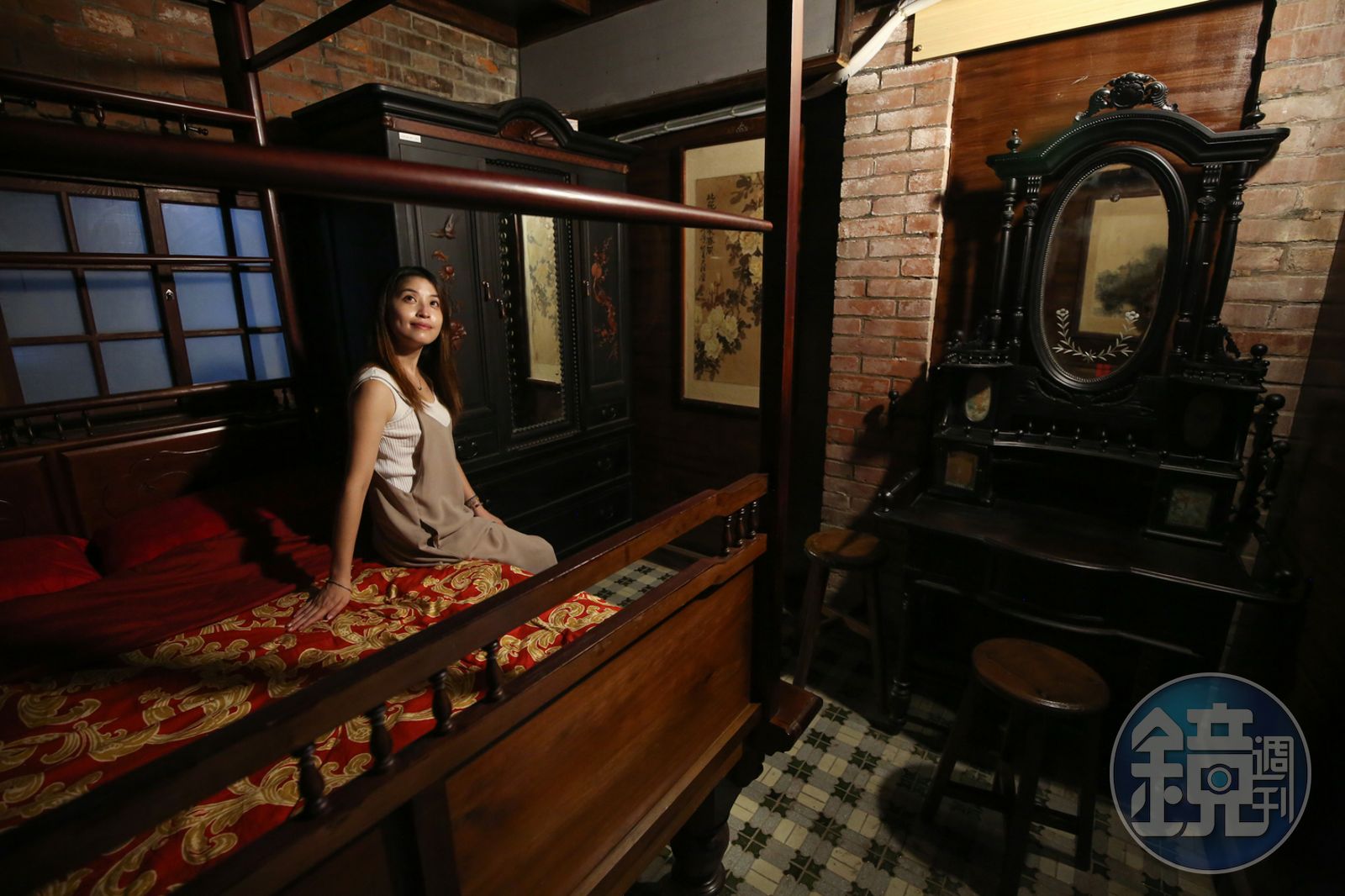 這間老屋讓我想起兒時的老家,白瓷流理檯前,阿嬤總是在那兒忙著燒菜,不久後餐桌便擺上滿滿一桌佳餚;浴室裡的浴缸還有現在已十分難得見到的彩色馬賽克花磚。最讓我興奮的是,客房裡放著一組以前只能在博物館看見的珍貴「紅眠床」,竟是我這幾晚的床鋪。