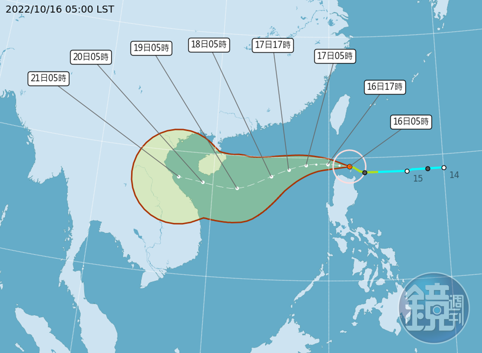 中央氣象局最新資料顯示,目前尼莎颱風5時的中心位置在北緯 19.3 度,東經 121.8 度,即在鵝鑾鼻的南南東方約 310 公里之處,以每小時17公里速度,向西進行,中心目前在鵝鑾鼻南南東方海面,向西移動,其暴風圈正逐漸進入巴士海峽,對巴士海峽及東沙島海面構成威脅。
