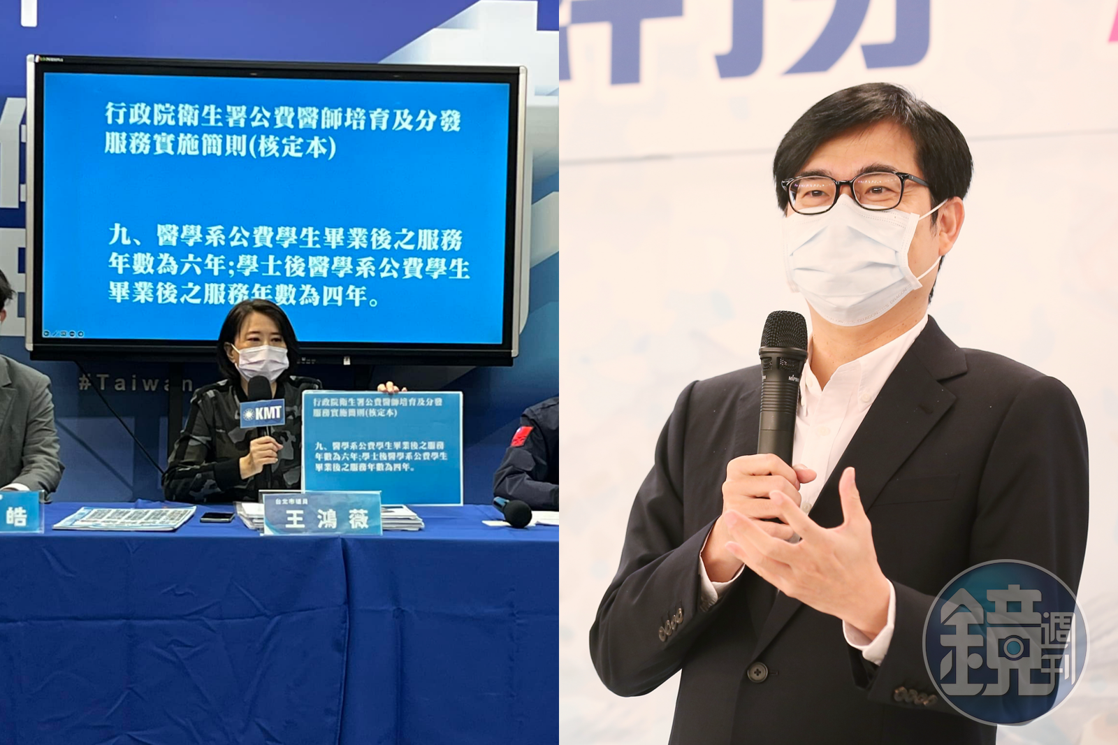王鴻薇今召開記者會控訴陳其邁「公費念醫30年未盡義務」,指其1984年就讀中山醫學院醫學系申請公費,依當時法規畢業後應履行服務年數6年,然而根據陳其邁自己提供的履歷,他至今都未盡義務,指衛福部依法應該向陳其邁追討相關費用及罰款。