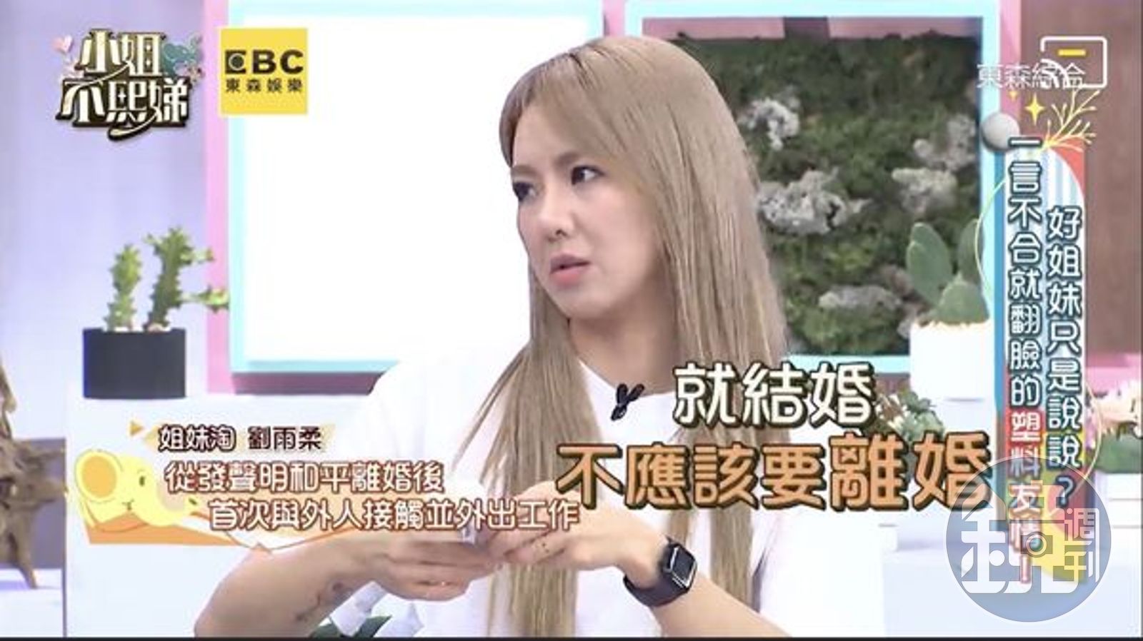 劉雨柔表示,離婚後幾乎一個禮拜都沒有出門,連親朋好友的電話、訊息也不回應,承認現在自己狀況不太好,是因為製作人關係才會願意上節目,不過她仍樂觀面對,「一開始會很難,但後面我相信兩個都會好,就是前面辛苦一點沒關係!還要一點時間,也不能太快,會有一點強迫我自己。」