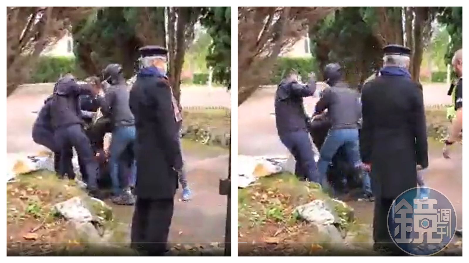 中國駐英國曼徹斯特領事館總領事鄭曦原被指襲擊示威者,他向《曼徹斯特晚報》提供監視器片段,反控示威者襲擊領事館,還傷害兩名職員,一名示威者抓住領事館職員的頸部不肯放手,所以其他職員把同事拉回領事館,但示威者仍未放手,於是「跌落」領事館範圍。