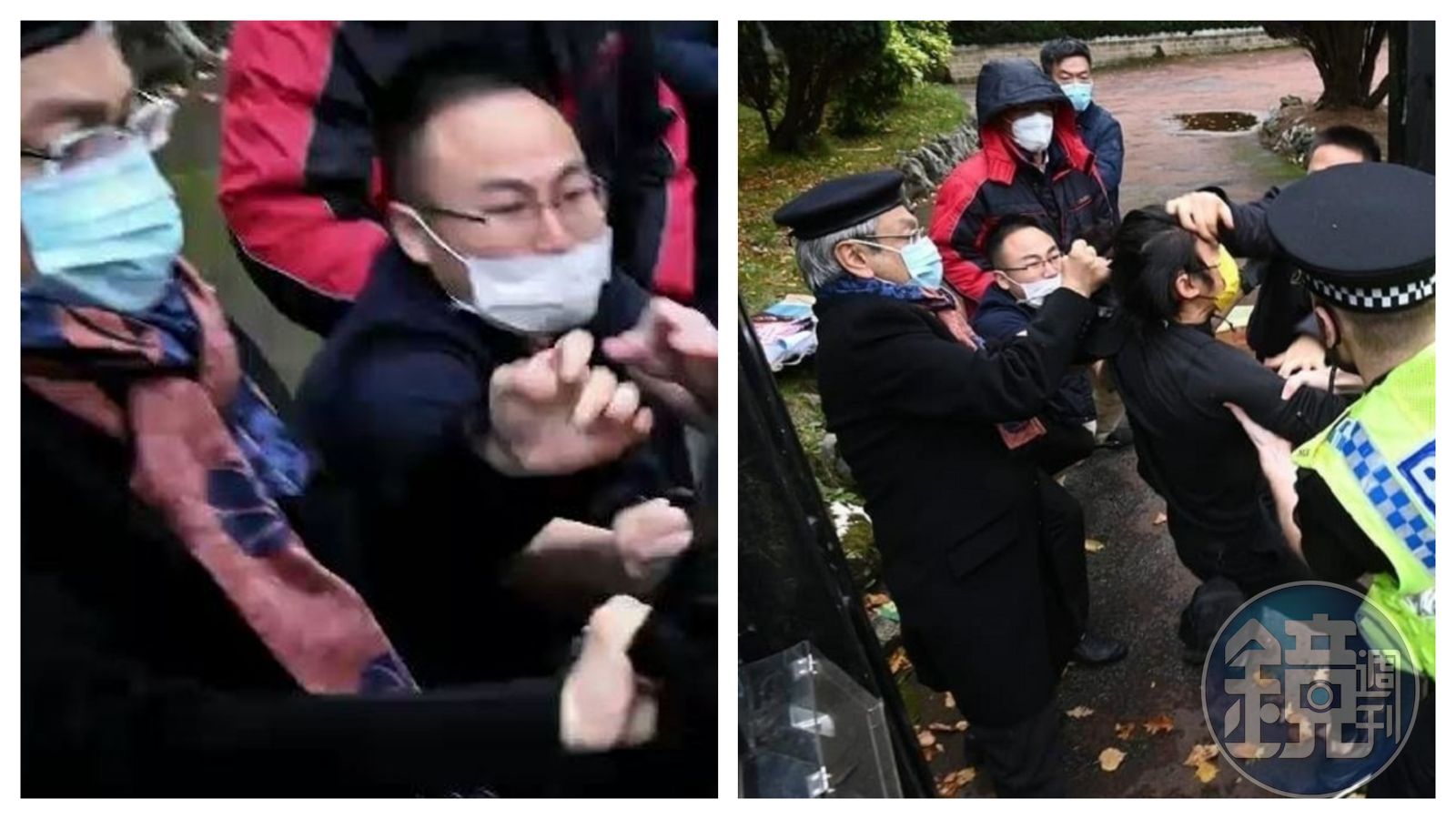 中共第20次全國代表大會16日開幕當天,一群住在英國的香港人前往中國駐曼徹斯特總領事館外抗議,並擺出「天滅中共」「賀佢老母」等標語,隨後就有相關人員從領事館內走出,破壞抗議旗幟並與示威者爆發肢體衝突,有1名男子就這樣被拖入領事館範圍內痛毆。