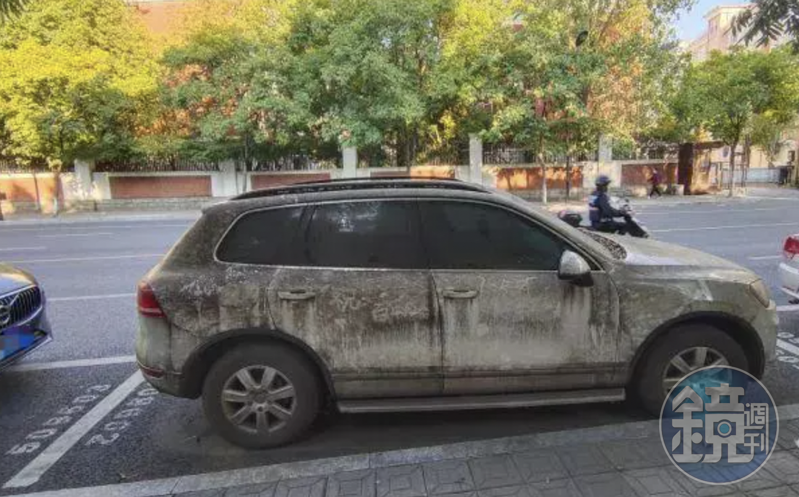 而附近居民也是相當困擾,表示這台白色福斯停了許久,除了占了一個位置,骯髒的外觀還影響市容,希望能夠將車輛拖吊,但是交警來了後,說車主表示自己人在外地走不開,但車主又沒違法,無法強行拖吊。