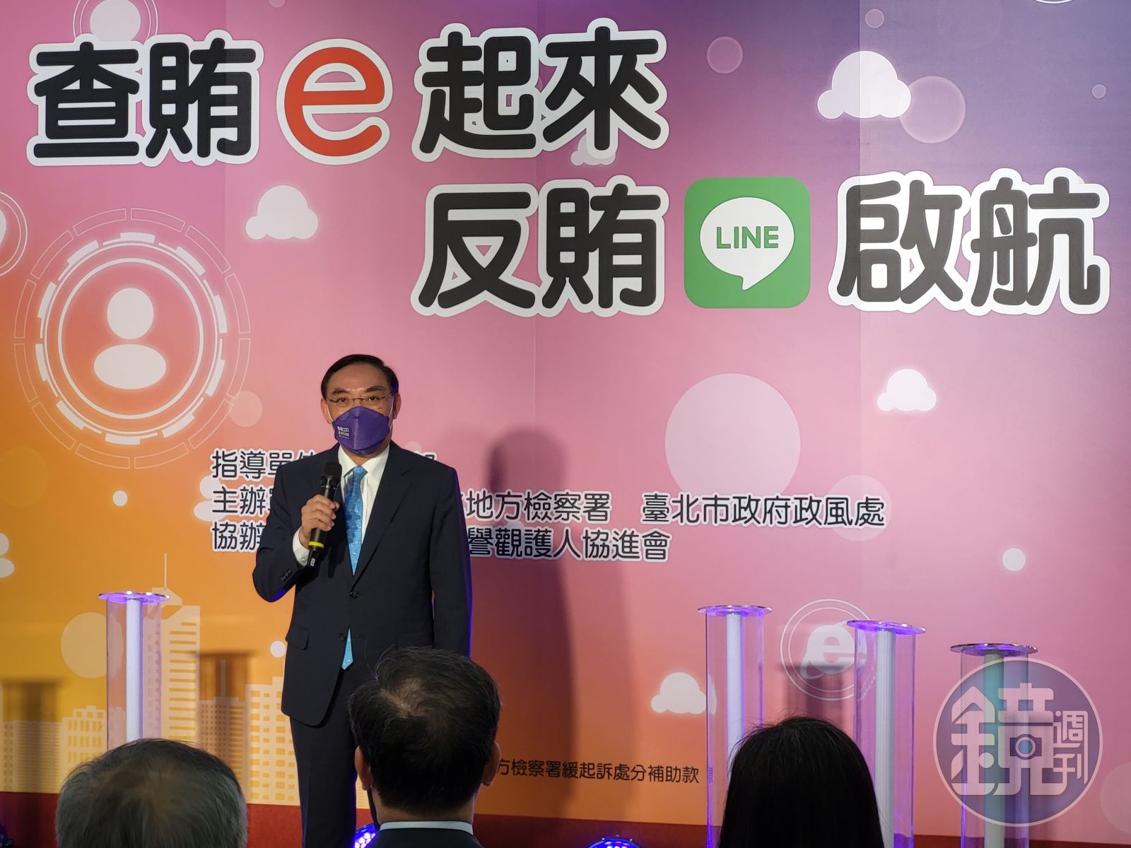 法務部長蔡清祥親臨記者會,他說除對台北地檢署的反賄選宣導成果予以肯定外,並重申成功的查察賄選,就是最好的反賄選宣導,而臺北地檢署此次更能運用科技宣導、深入基層,全面結合市政、社會資源,並設置Line@帳號即時掌握情資,更是進一步的創舉,呼籲大家多多使用手機之便利性,勇於檢舉賄選。