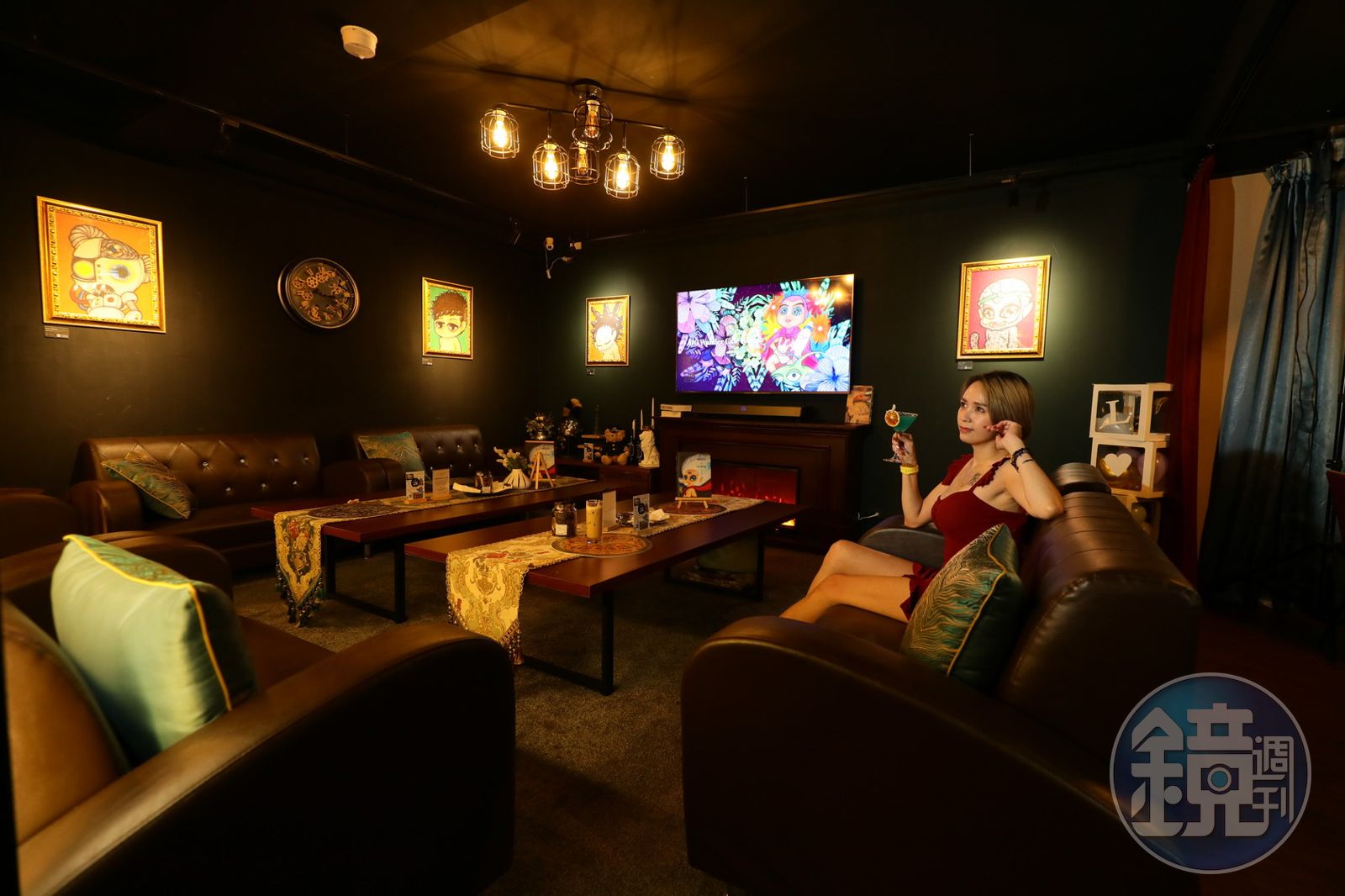 店名中的「Club」就位在地下室,設計風格與一樓空間截然不同,深色系色調、大尺寸沙發和桌椅,牆上同樣掛著D.G. Lampaulus的畫作,提供沉浸式體驗感。這樣的差異也是老闆的巧思,呈現「白晝與黑夜」的設計概念。