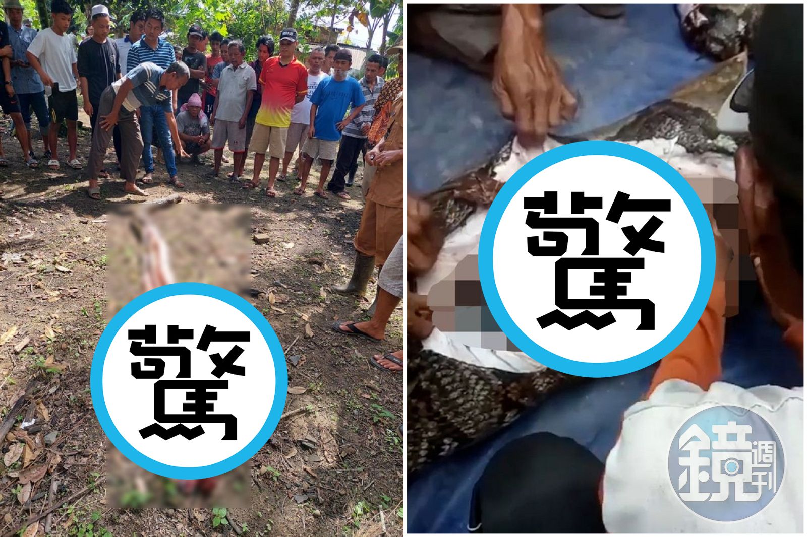 驚悚影片曝光!阿嬤遭6.7公尺蟒蛇活吞,剖開蛇肚驚見蜷曲遺體。(翻自detik.com)發布時間:2022.10.26 13:41 臺北時間