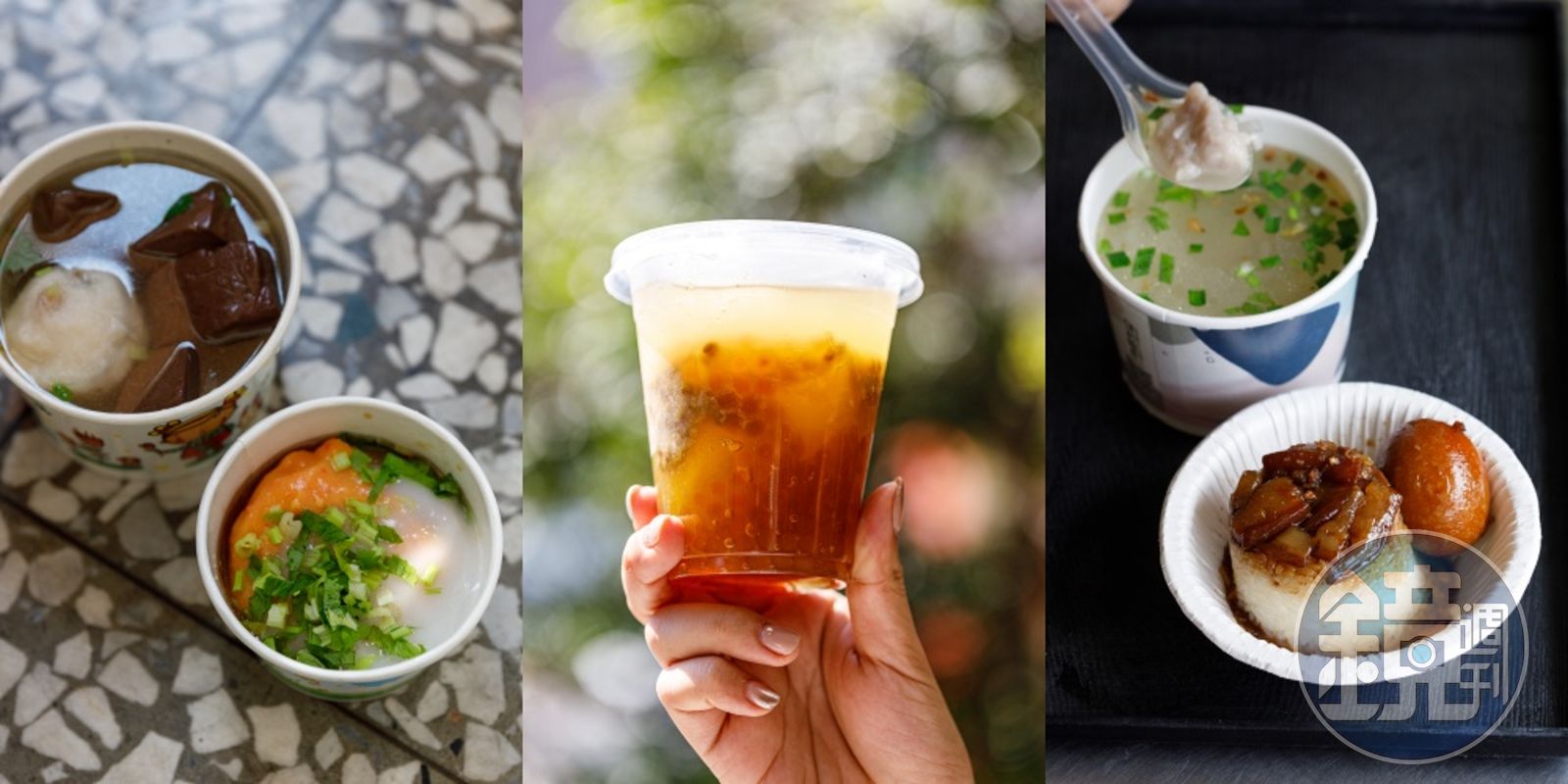 離廟口最近,最出名的就屬「樹下阿婆粉圓」,大樹蔭下,承載許多人的童年甜蜜記憶。 銅板價一杯30元,品項單純、賣相純樸,靠著美味傳千里,粉圓煮得晶透,體積偏小,入口存在感十足,又不必費勁咀嚼。除了招牌粉圓,還有粉粿、綠豆、仙草及梅子等配料可選擇,最推薦手工製作的粉粿,金黃色澤誘人、軟Q適中,與古法熬製的糖水絕搭。