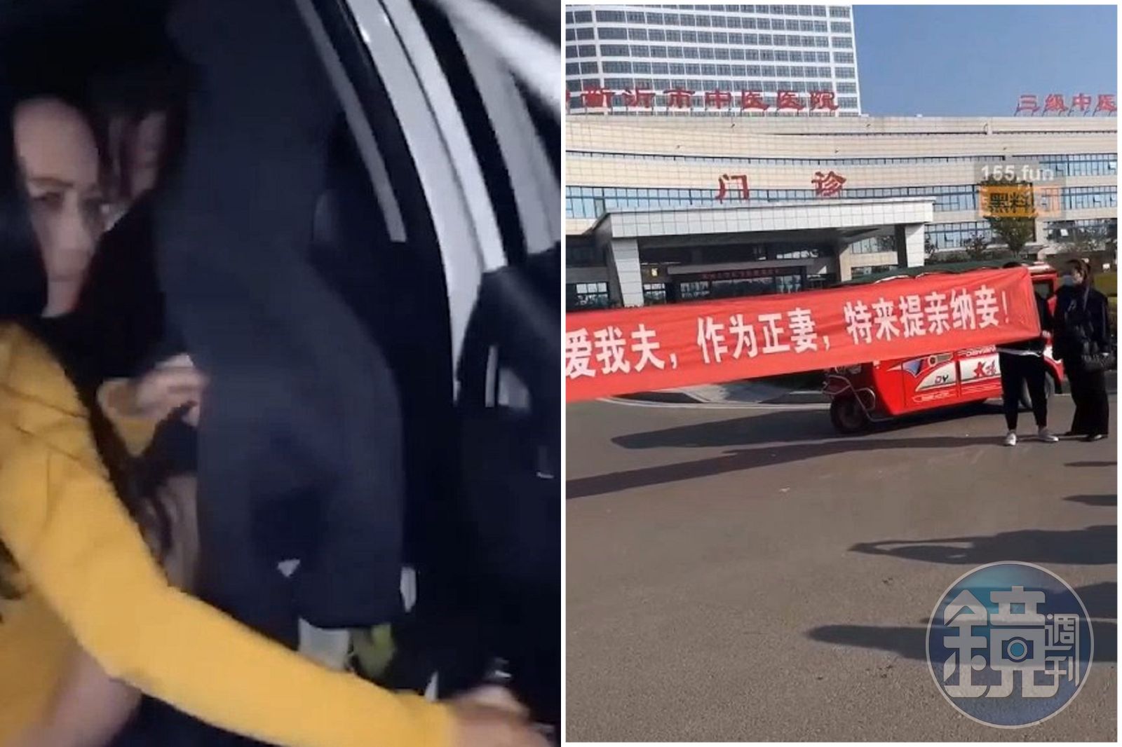 但正宮接下來的「出招」,跌破不少人的眼鏡。幾天後,正宮直接帶人到醫院大門口,更當場展現「中共美學」,拉起長長的紅布條,上面寫著:「普外科護士王艷深愛我夫,作為正妻,特來提親納妾!」